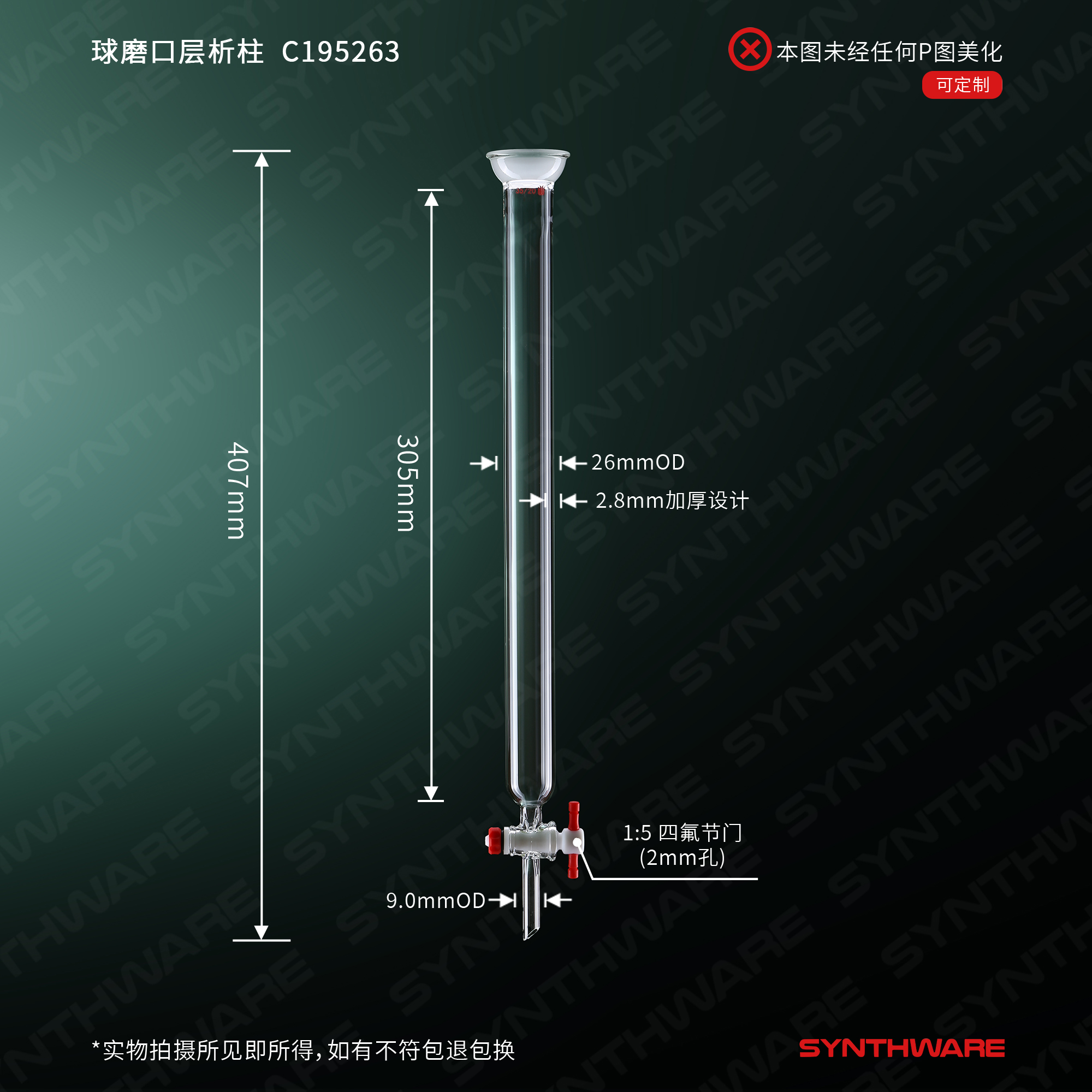 层析类 > 层析柱 > 球碗口闪式-无砂版层析柱 > SYNTHWARE > 球磨口层析柱,φ26mm,有效长:305mm,2mm节门孔径,35/20 C195263