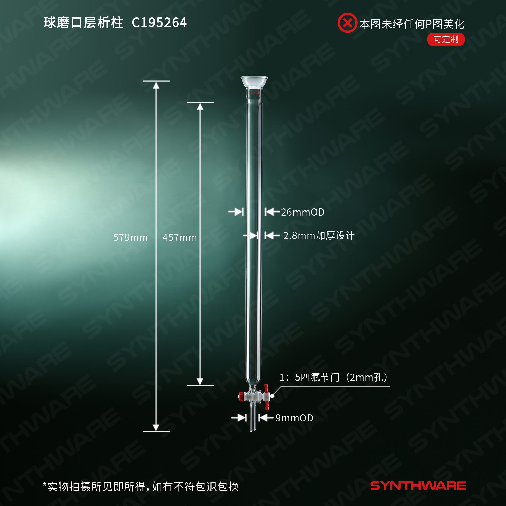 层析类 > 层析柱 > 球碗口闪式-无砂版层析柱 > SYNTHWARE > 球磨口层析柱,φ26mm,有效长:457mm,2mm节门孔径,35/20 C195264