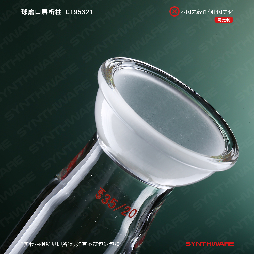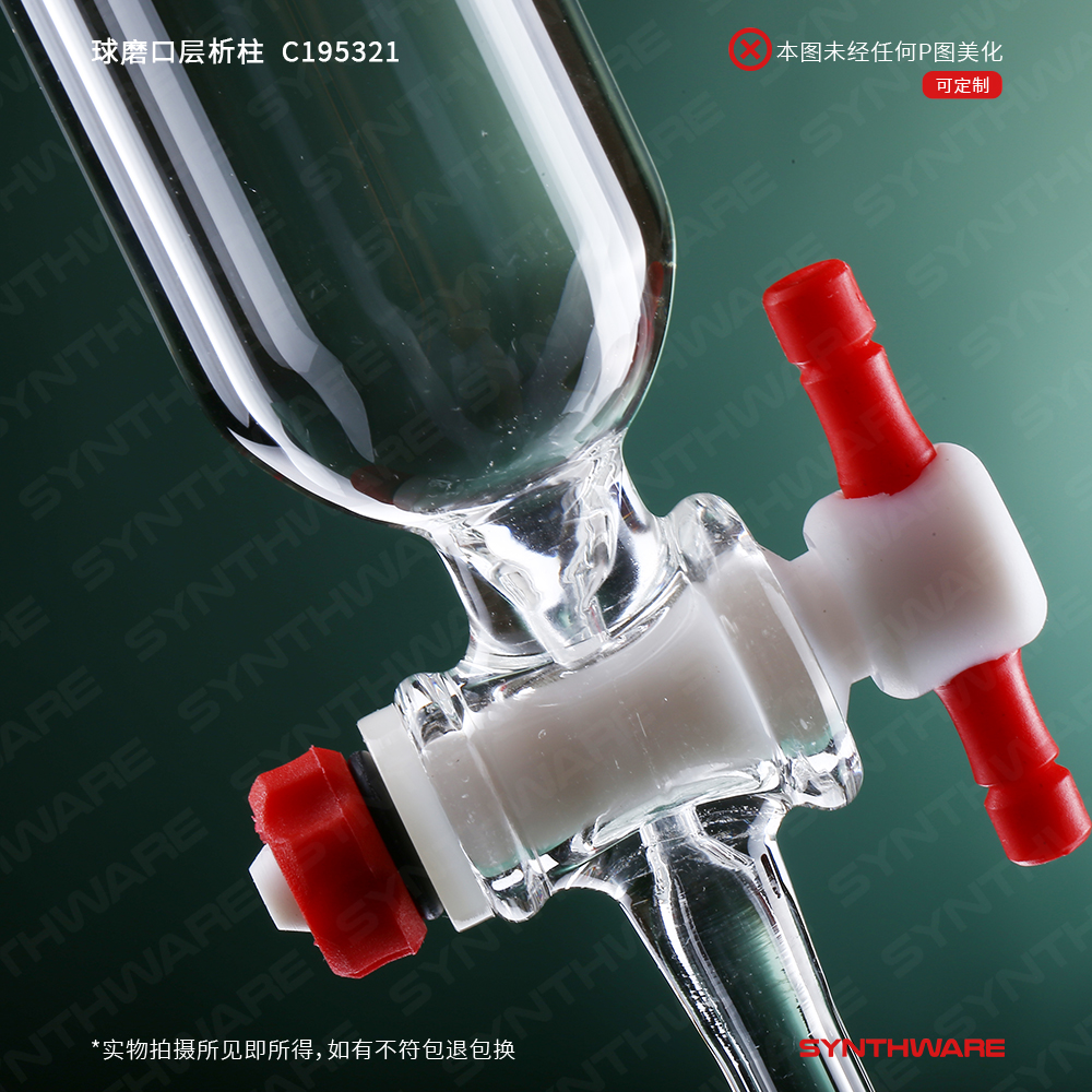 层析类 > 层析柱 > 球碗口闪式-无砂版层析柱 > SYNTHWARE > 球磨口层析柱,φ32mm,有效长:203mm,2mm节门孔径,35/20 C195321
