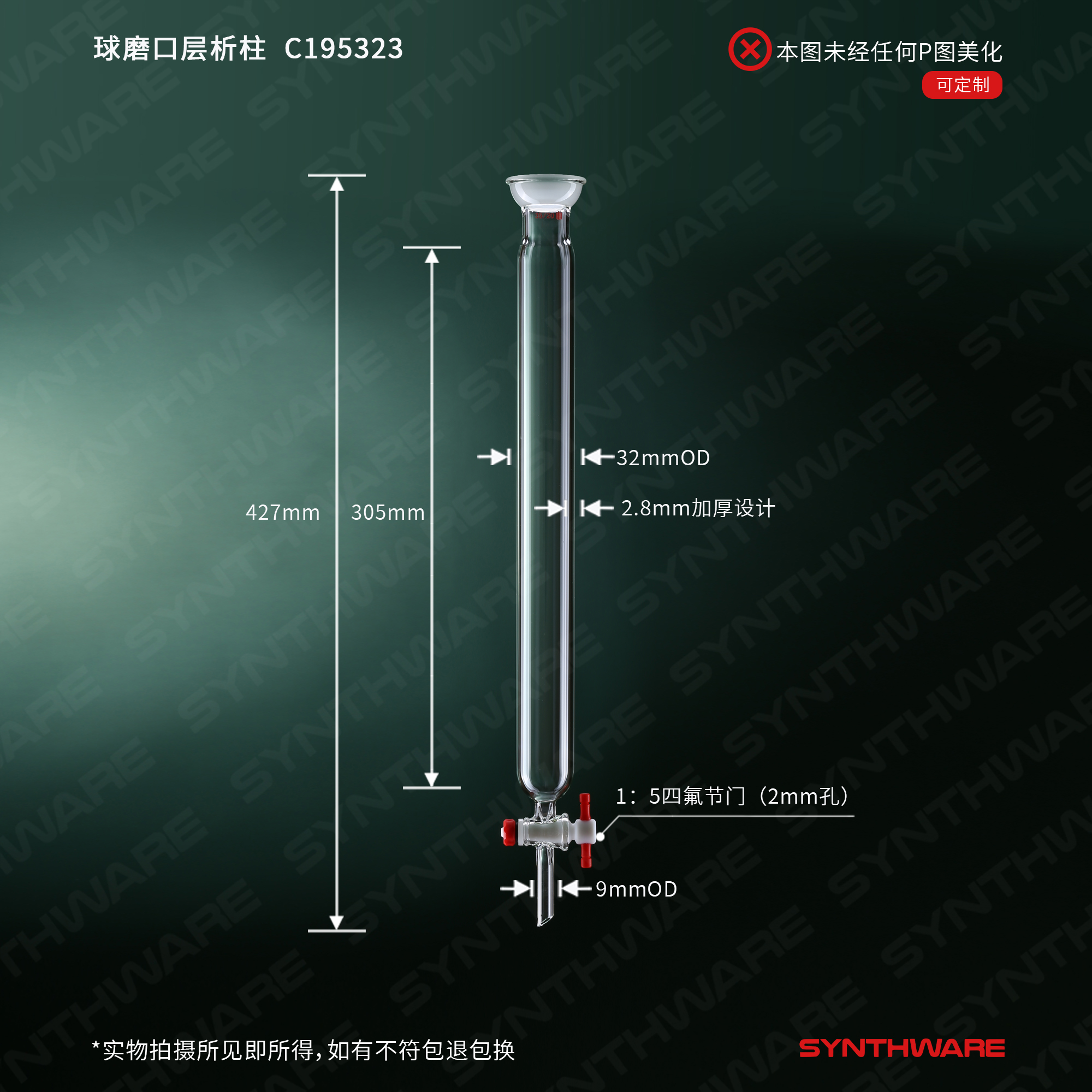 层析类 > 层析柱 > 球碗口闪式-无砂版层析柱 > SYNTHWARE > 球磨口层析柱,φ32mm,有效长:305mm,2mm节门孔径,35/20 C195323