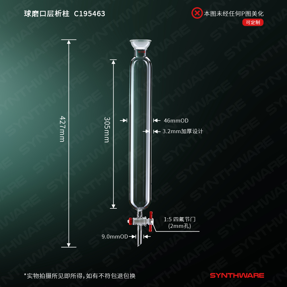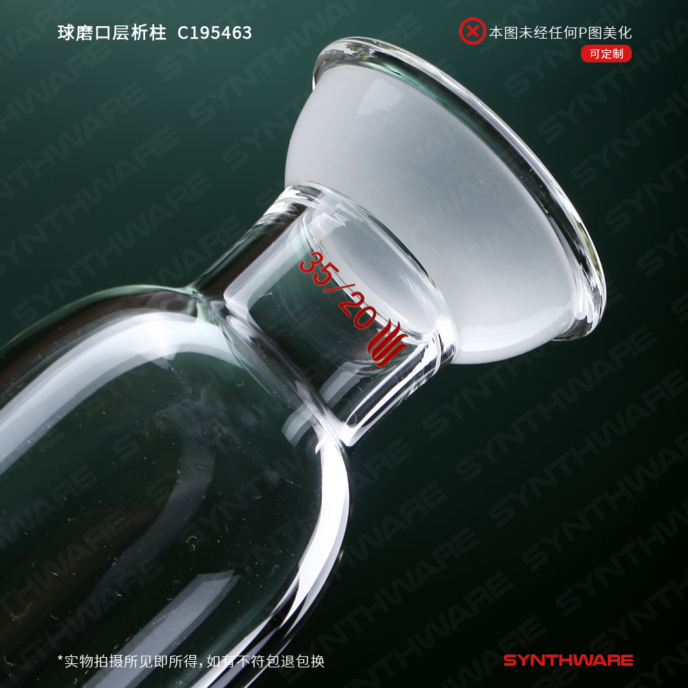 层析类 > 层析柱 > 球碗口闪式-无砂版层析柱 > SYNTHWARE > 球磨口层析柱,φ46mm,有效长:305mm,2mm节门孔径,35/20 C195463
