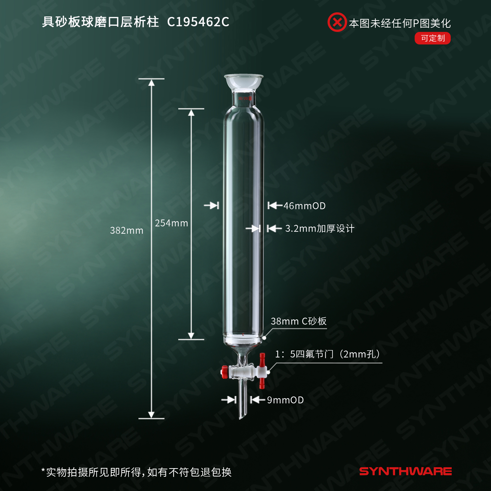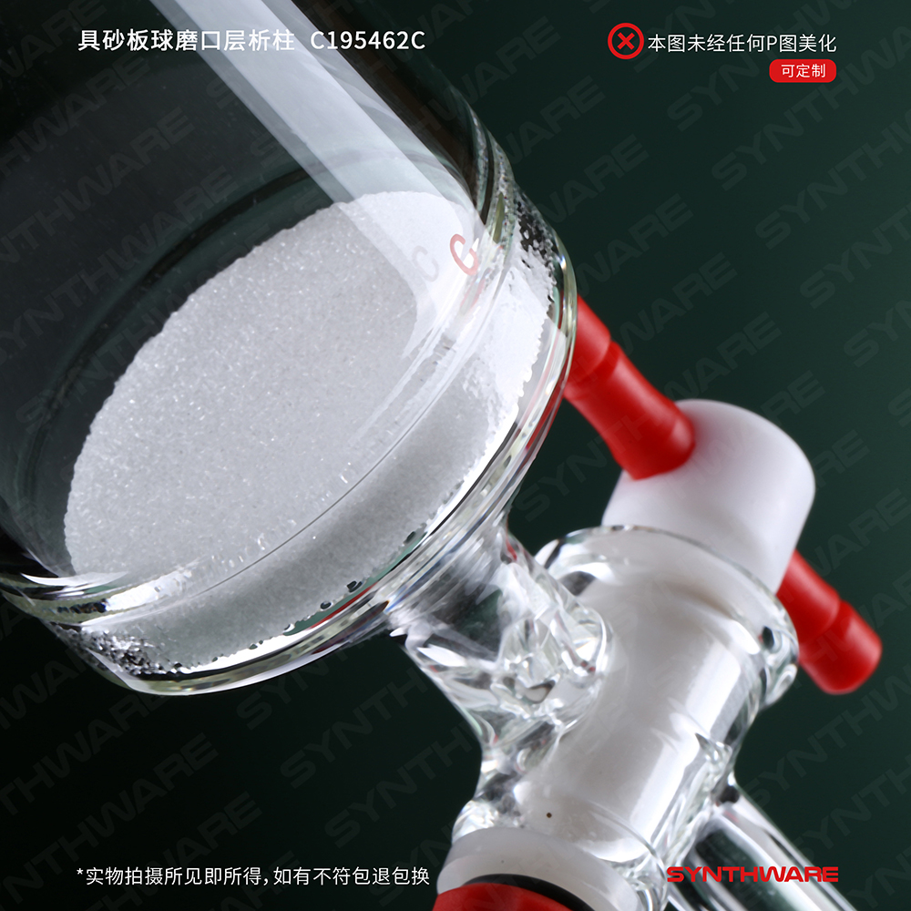 层析类 > 层析柱 > 球碗口具砂板闪式层析柱 > SYNTHWARE > 具砂板球磨口层析柱,φ46mm,有效长:254mm,2mm节门孔径,35/20 C195462C