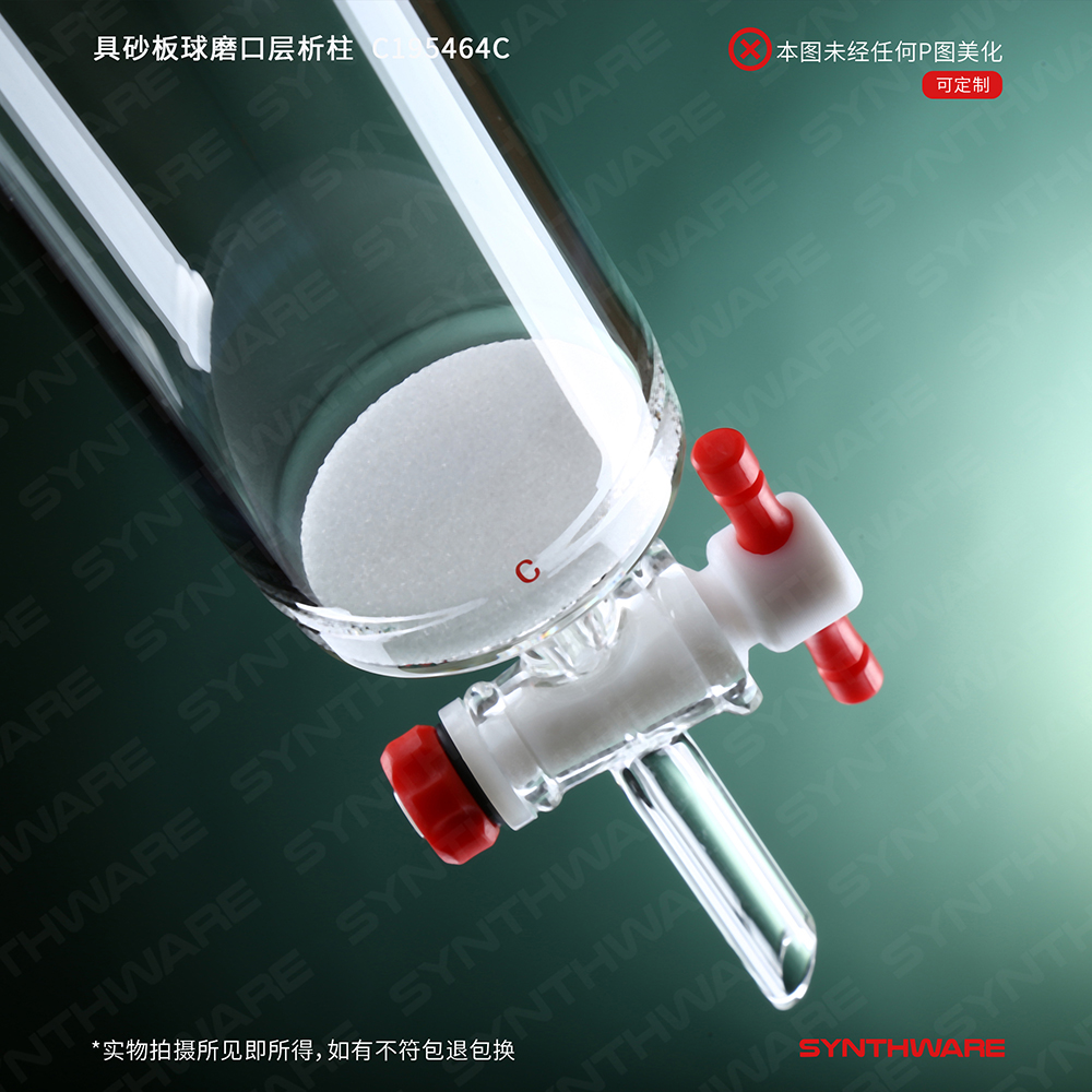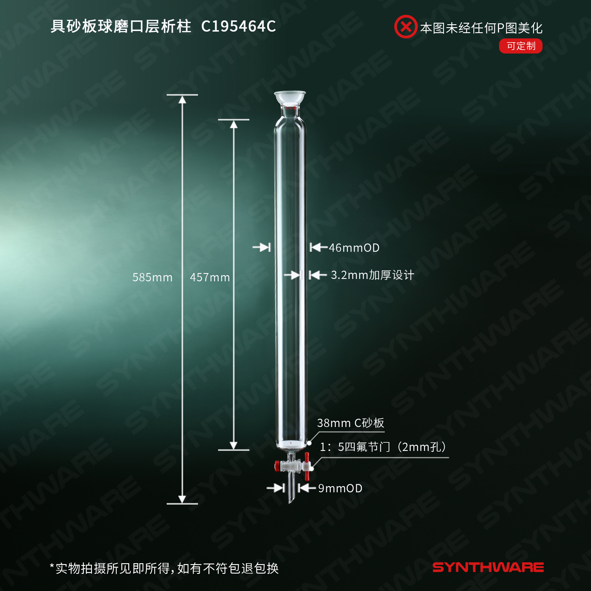 层析类 > 层析柱 > 球碗口具砂板闪式层析柱 > SYNTHWARE > 具砂板球磨口层析柱,φ46mm,有效长:457mm,2mm节门孔径,35/20 C195464C