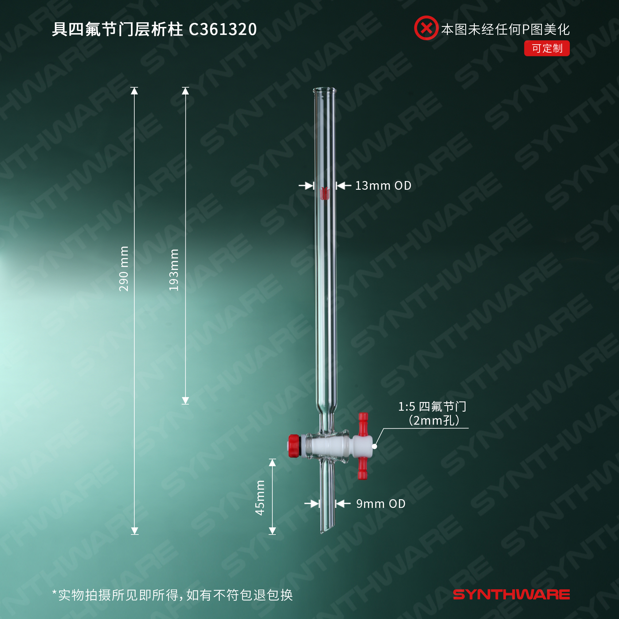 层析类 > 层析柱 > 具四氟节门-无砂板层析柱 > SYNTHWARE > 具四氟节门层析柱,φ13mm,有效长:203mm C361320