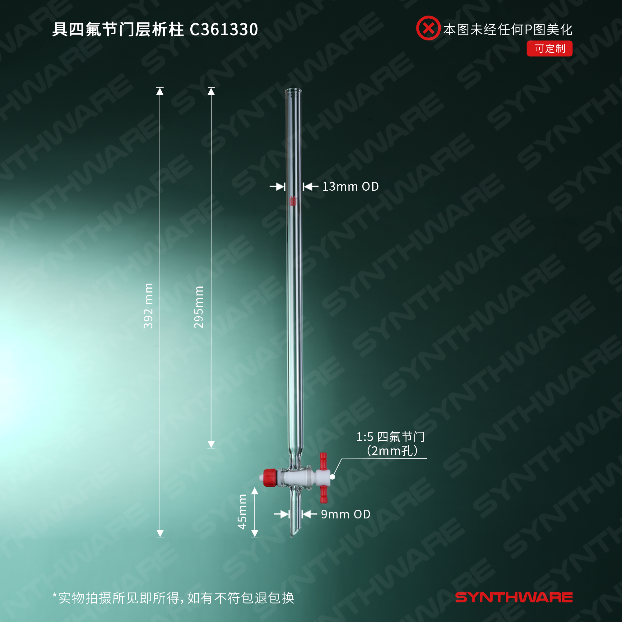 层析类 > 层析柱 > 具四氟节门-无砂板层析柱 > SYNTHWARE > 具四氟节门层析柱,φ13mm,有效长:300mm C361330