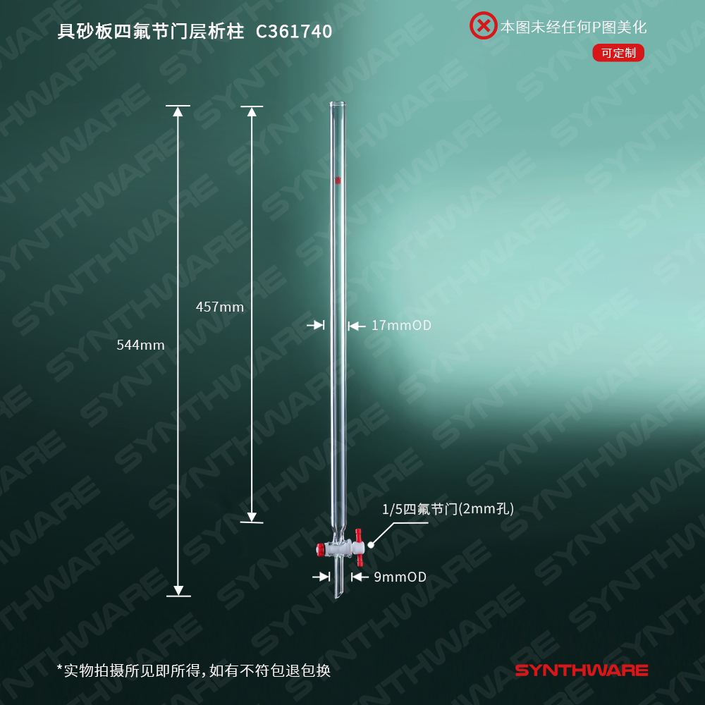 层析类 > 层析柱 > 具四氟节门-无砂板层析柱 > SYNTHWARE > 具四氟节门层析柱,φ17mm,有效长:457mm C361740