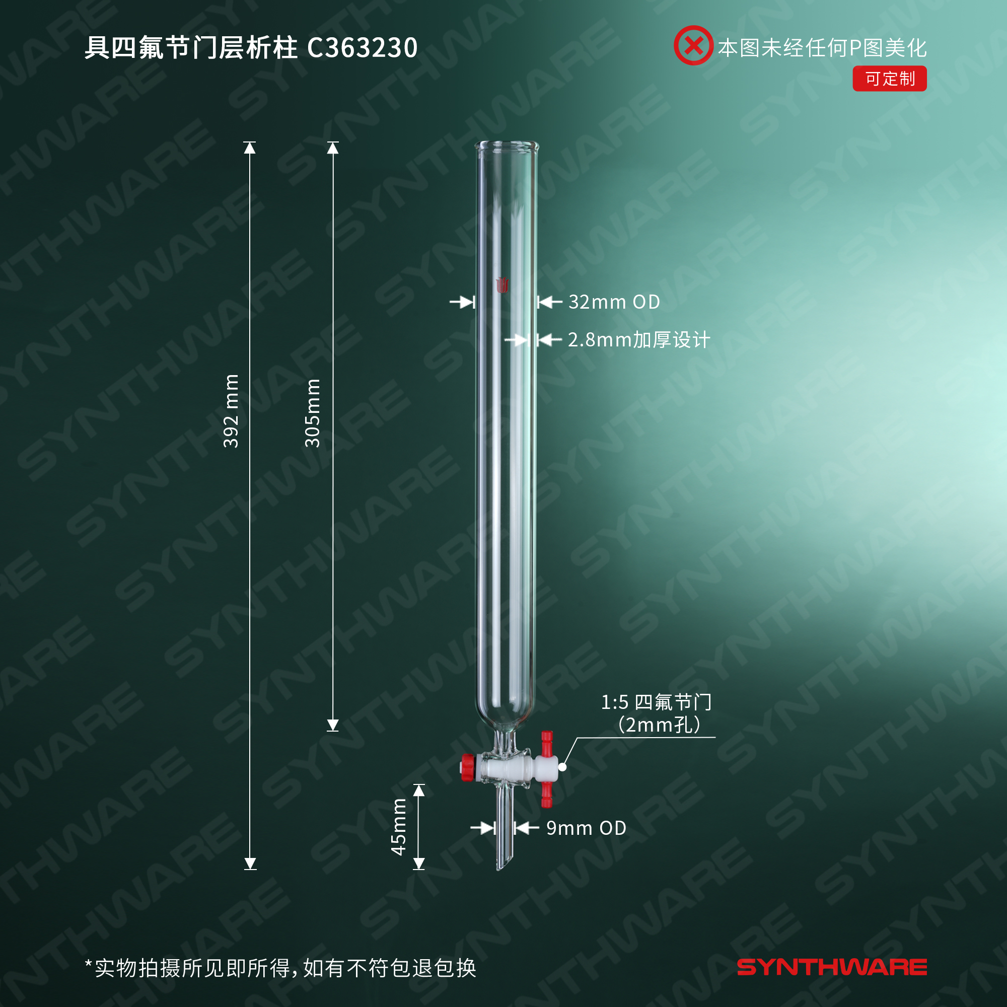 层析类 > 层析柱 > 具四氟节门-无砂板层析柱 > SYNTHWARE > 具四氟节门层析柱,φ32mm,有效长:305mm C363230