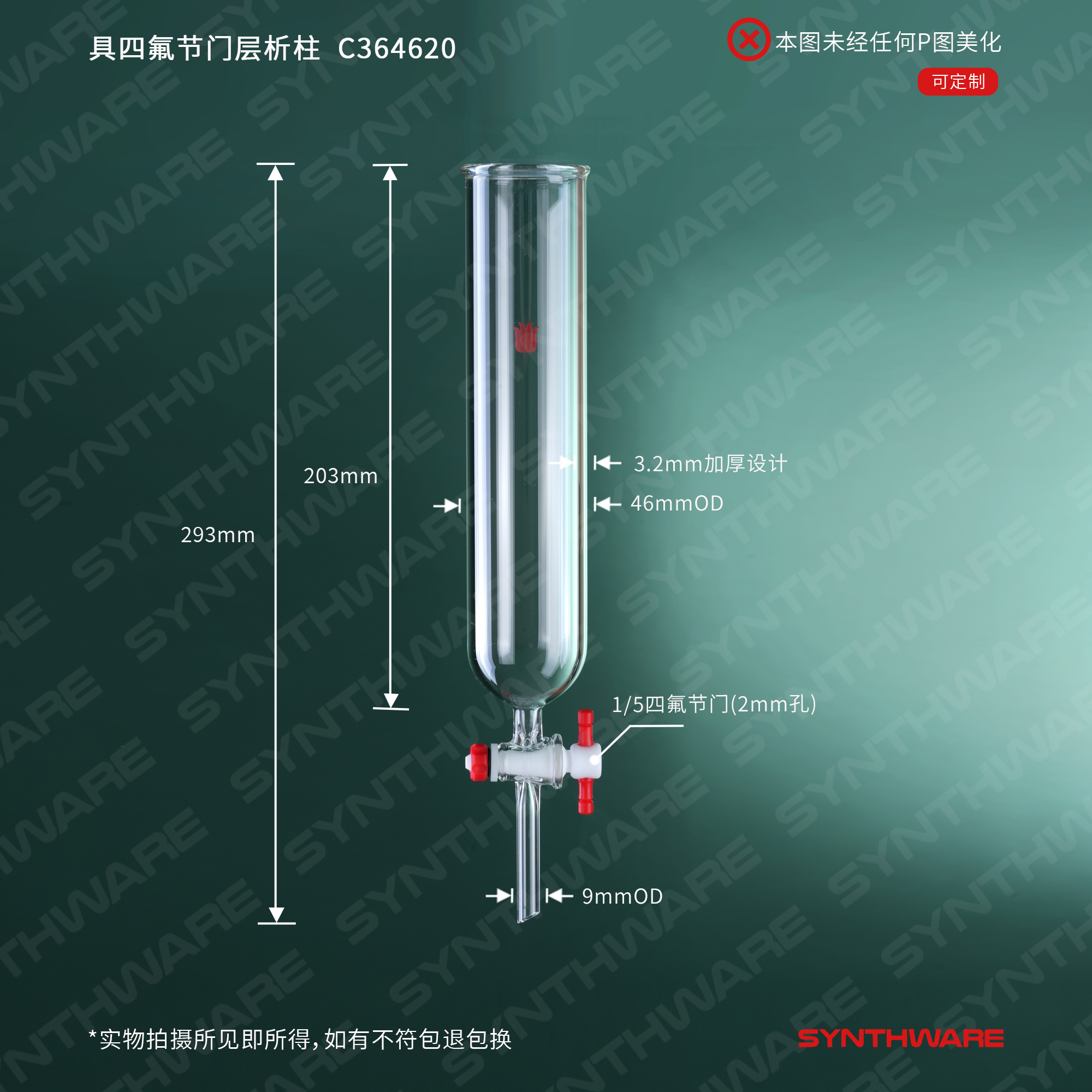 层析类 > 层析柱 > 具四氟节门-无砂板层析柱 > SYNTHWARE > 具四氟节门层析柱,φ46mm,有效长:203mm C364620