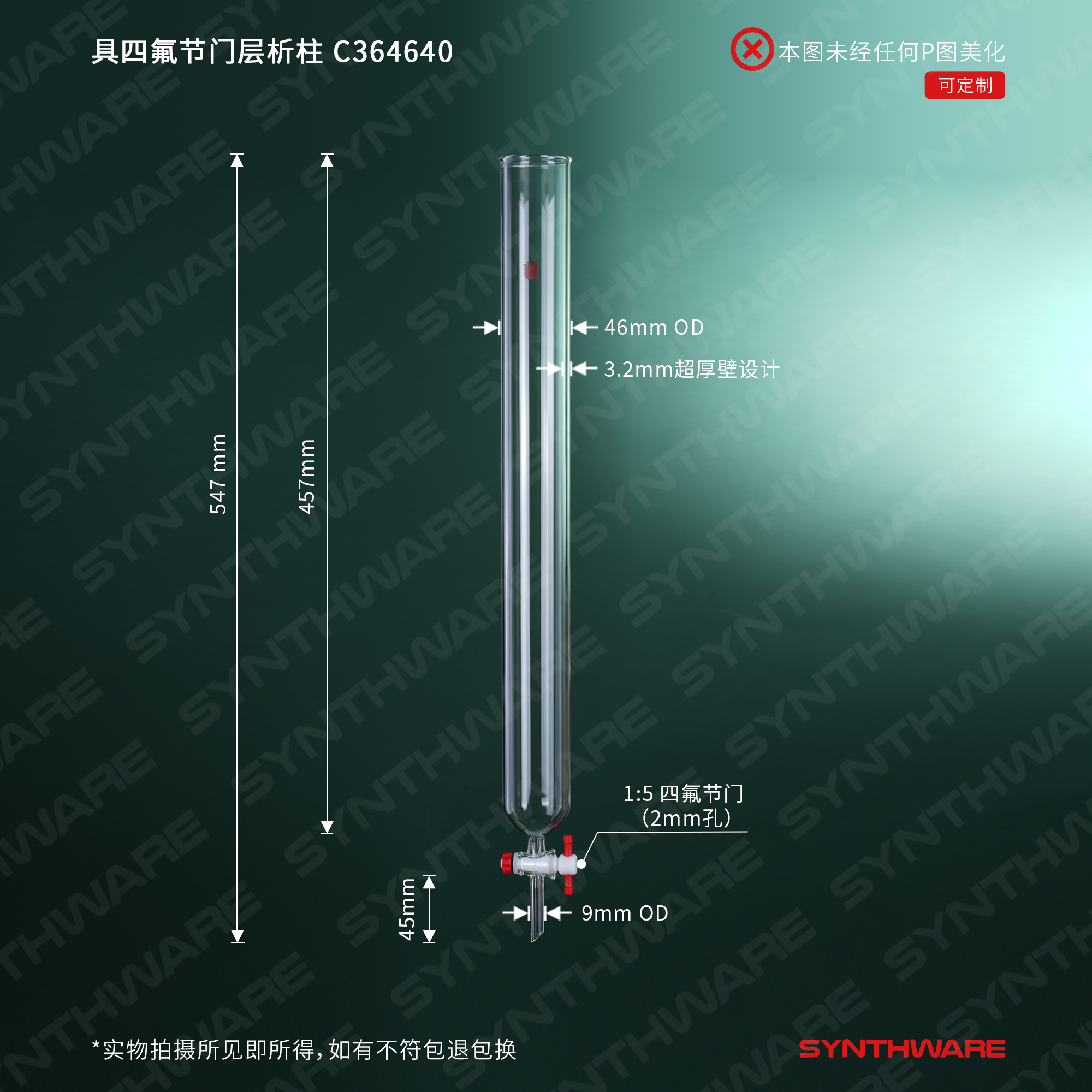 层析类 > 层析柱 > 具四氟节门-无砂板层析柱 > SYNTHWARE > 具四氟节门层析柱,φ46mm,有效长:457mm C364640