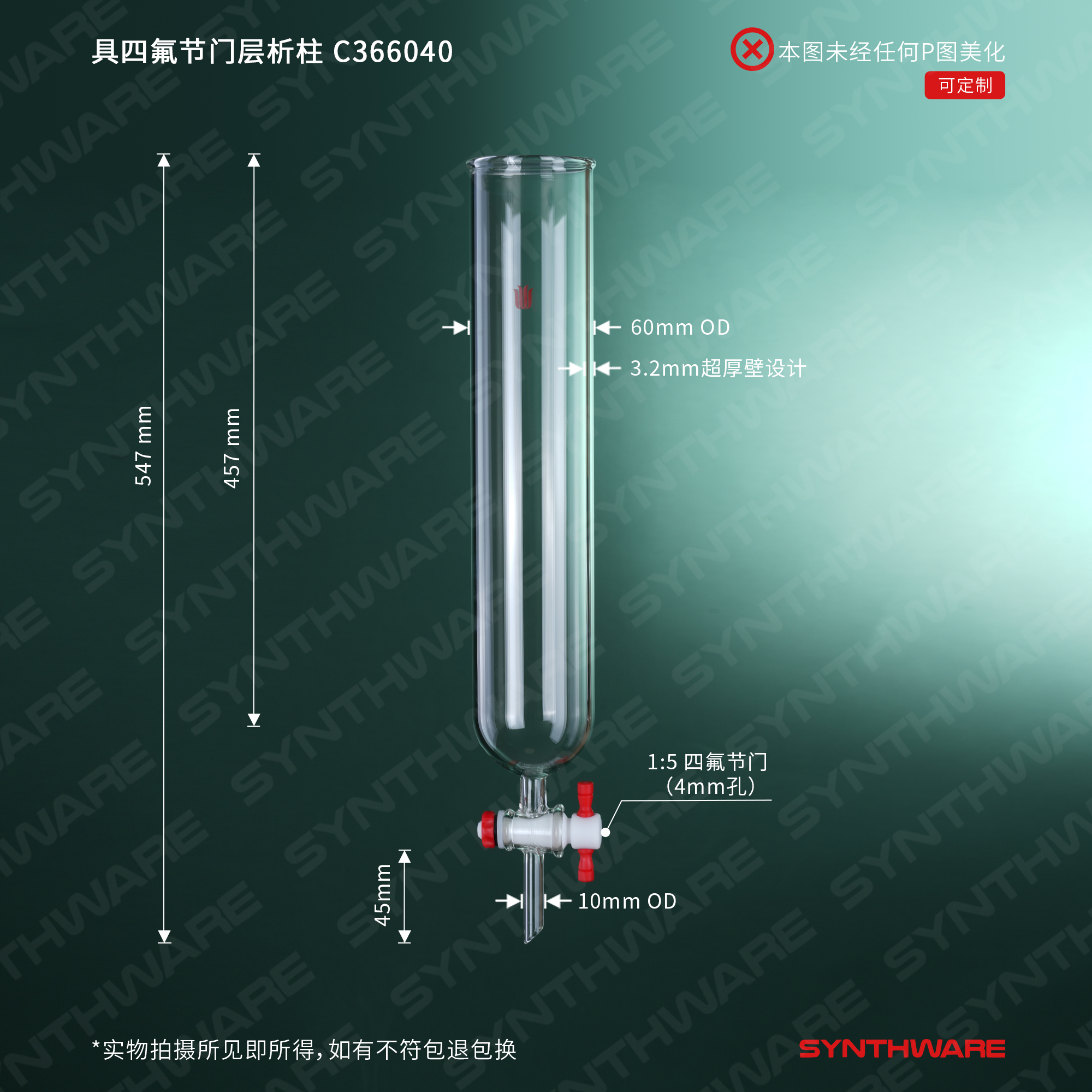 层析类 > 层析柱 > 具四氟节门-无砂板层析柱 > SYNTHWARE > 具四氟节门层析柱,φ60mm,有效长:457mm C366040