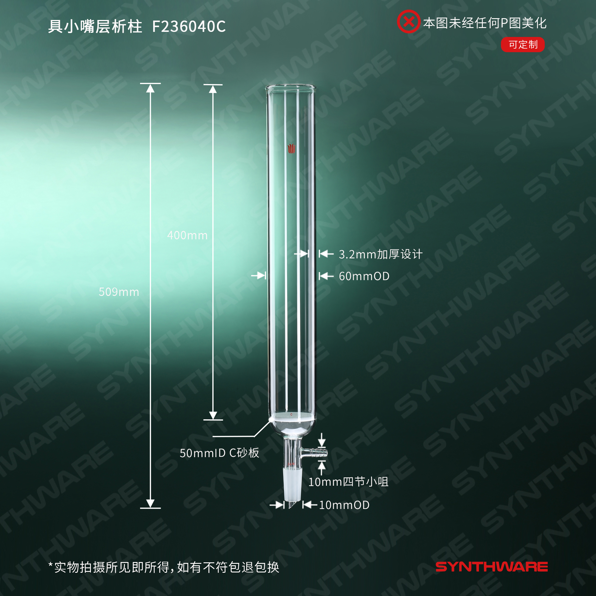 层析类 > 减压层析柱 > 翻边口减压层析柱 > SYNTHWARE > 具小嘴层析柱,管径:60mm,管长:400mm,C F236040C