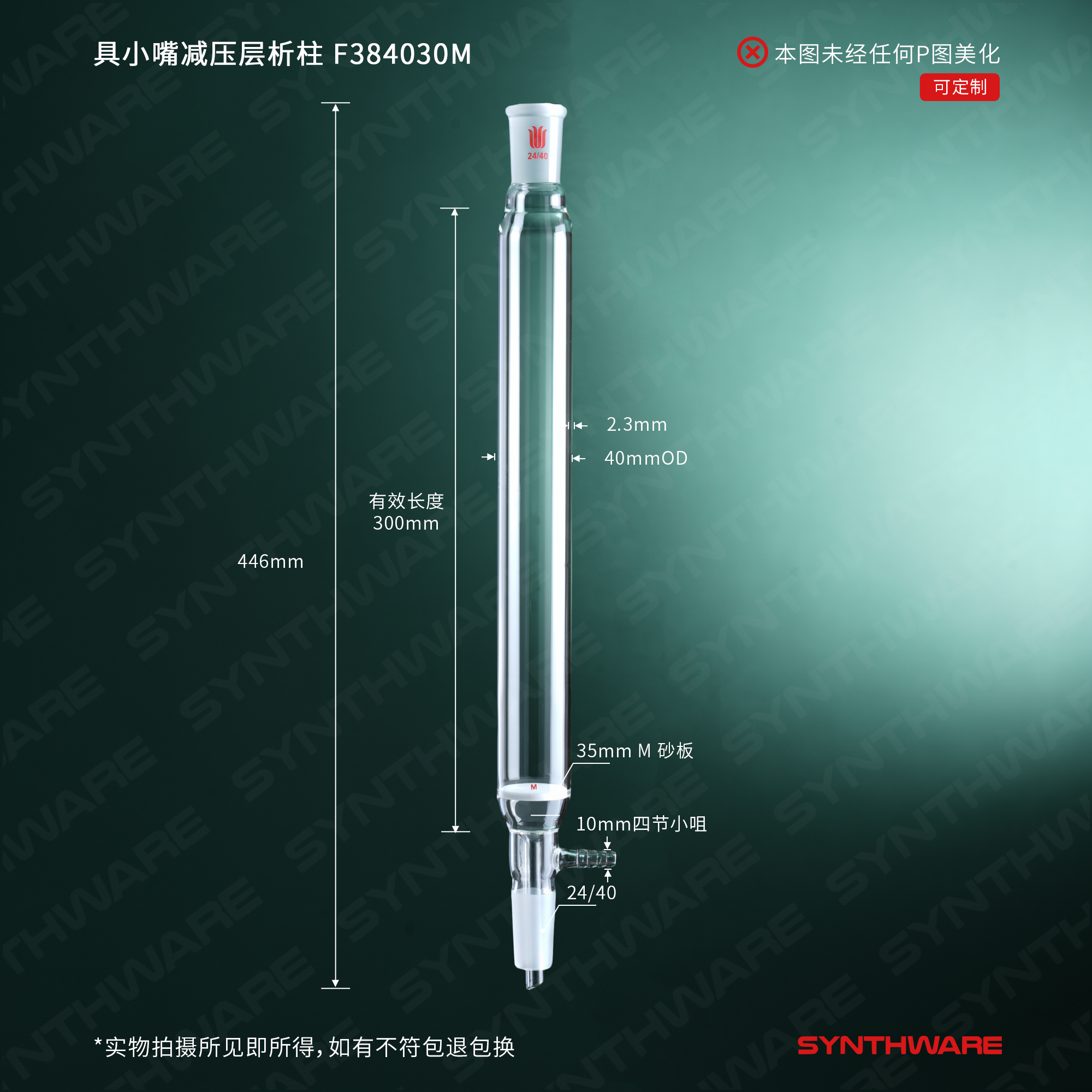 具小嘴减压层析柱,上下磨口24/40,管径:40mm,管长:300mm,M F384030M