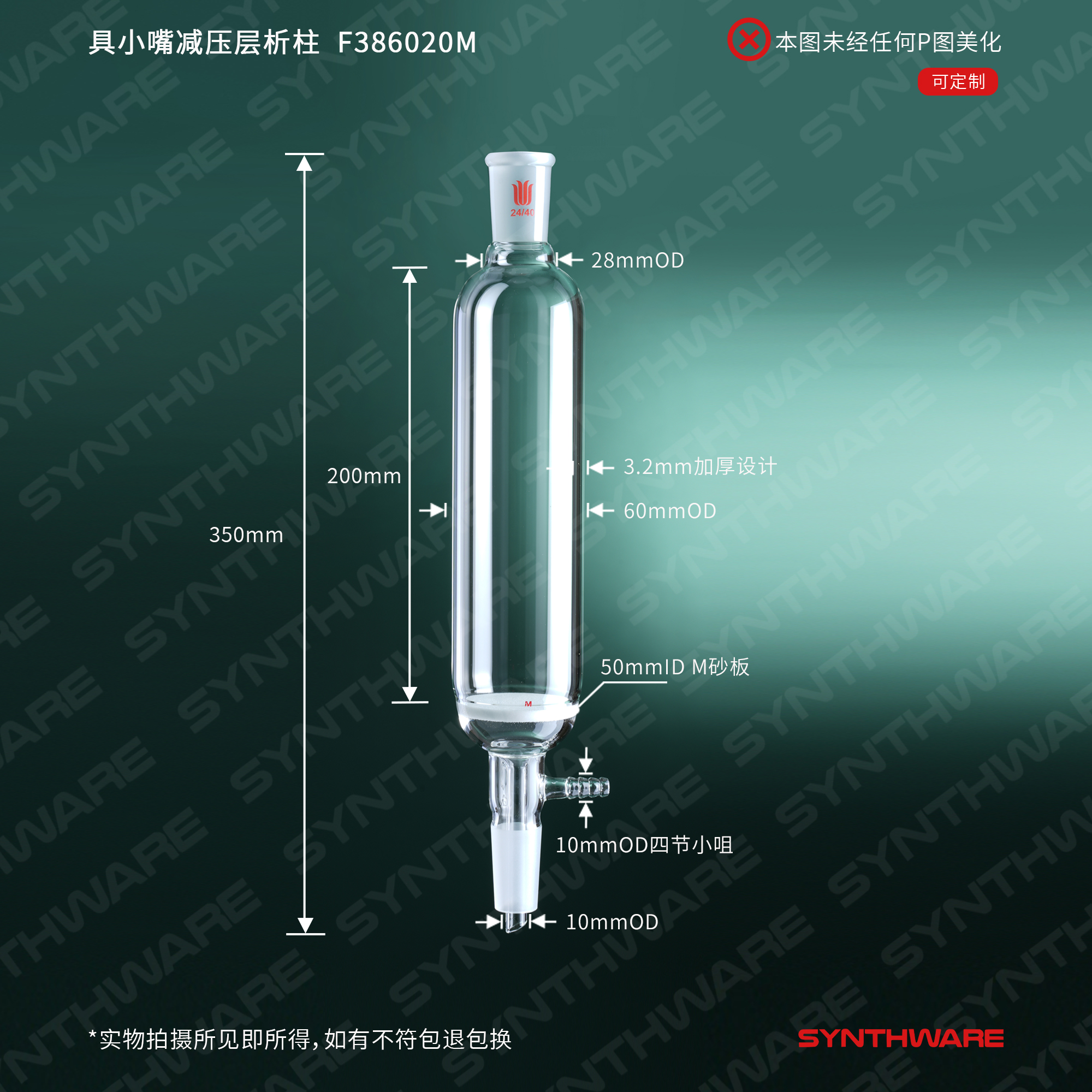 具小嘴减压层析柱,上下磨口24/40,管径:60mm,管长:200mm,M F386020M