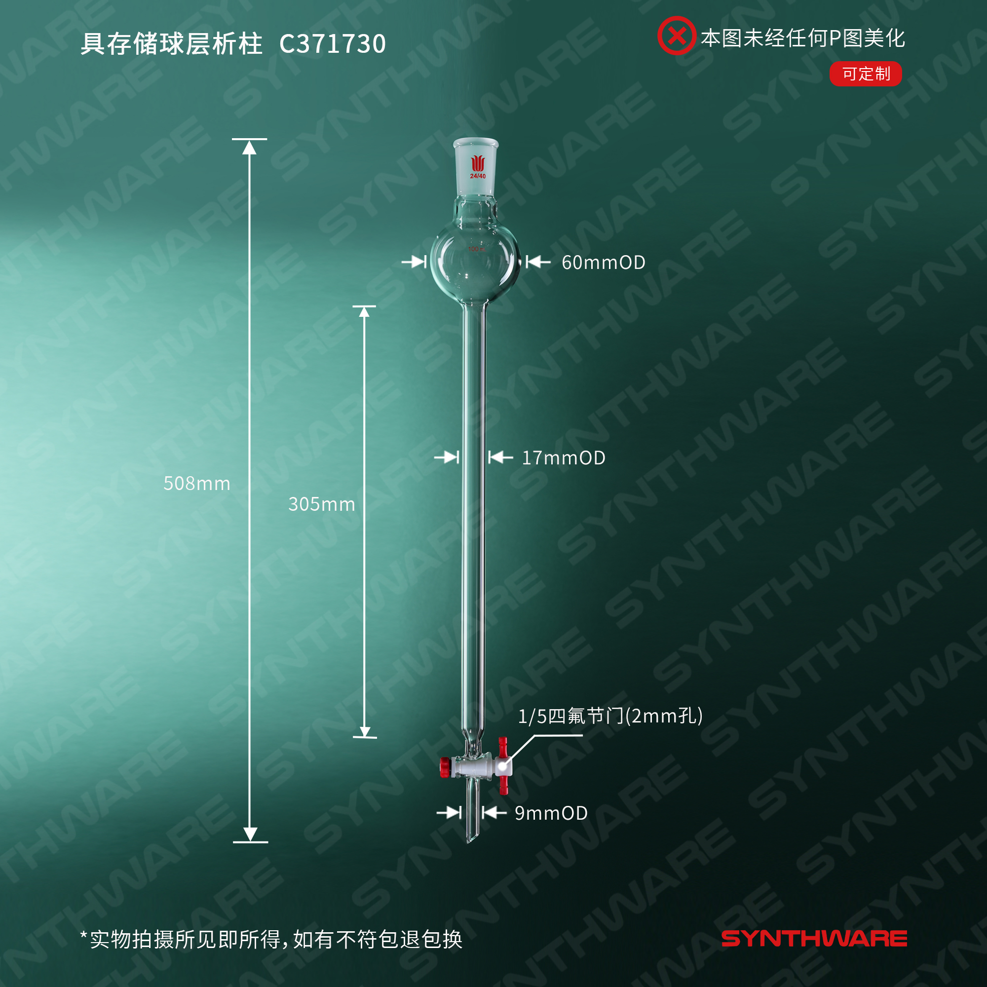 层析类 > 具存储球层析柱 > 具存储球闪式-无砂板层析柱 > SYNTHWARE > 具存储球层析柱,24/40,φ17mm,有效长305mm,存储球:100ml C371730