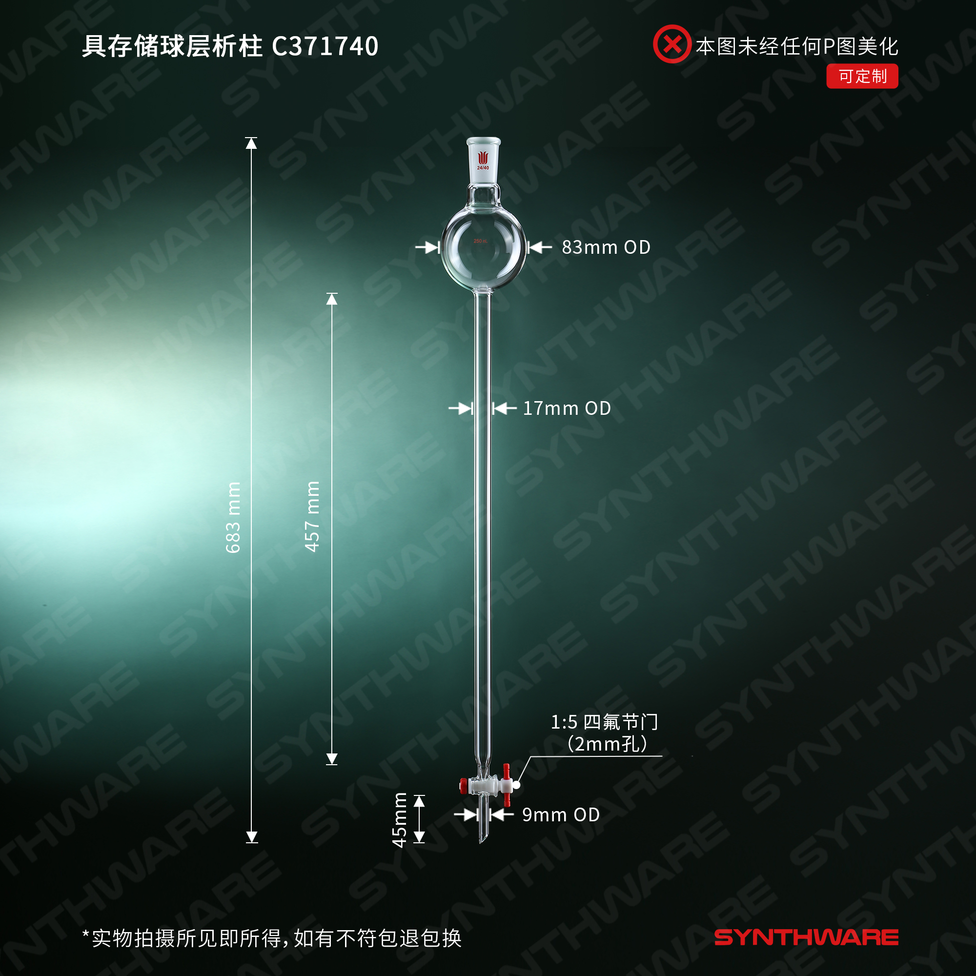 层析类 > 具存储球层析柱 > 具存储球闪式-无砂板层析柱 > SYNTHWARE > 具存储球层析柱,24/40,φ17mm,有效长457mm,存储球:250ml C371740