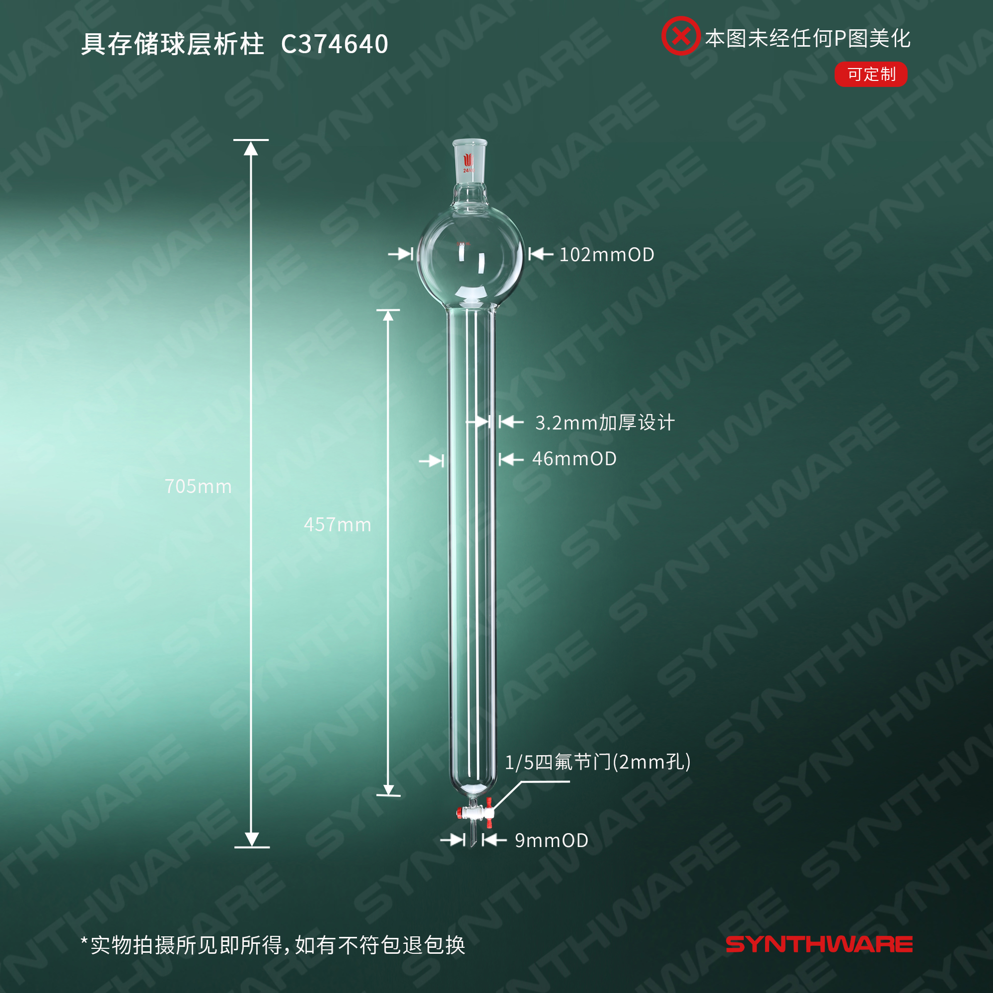 层析类 > 具存储球层析柱 > 具存储球闪式-无砂板层析柱 > SYNTHWARE > 具存储球层析柱,24/40,φ46mm,有效长457mm,存储球:500ml C374640