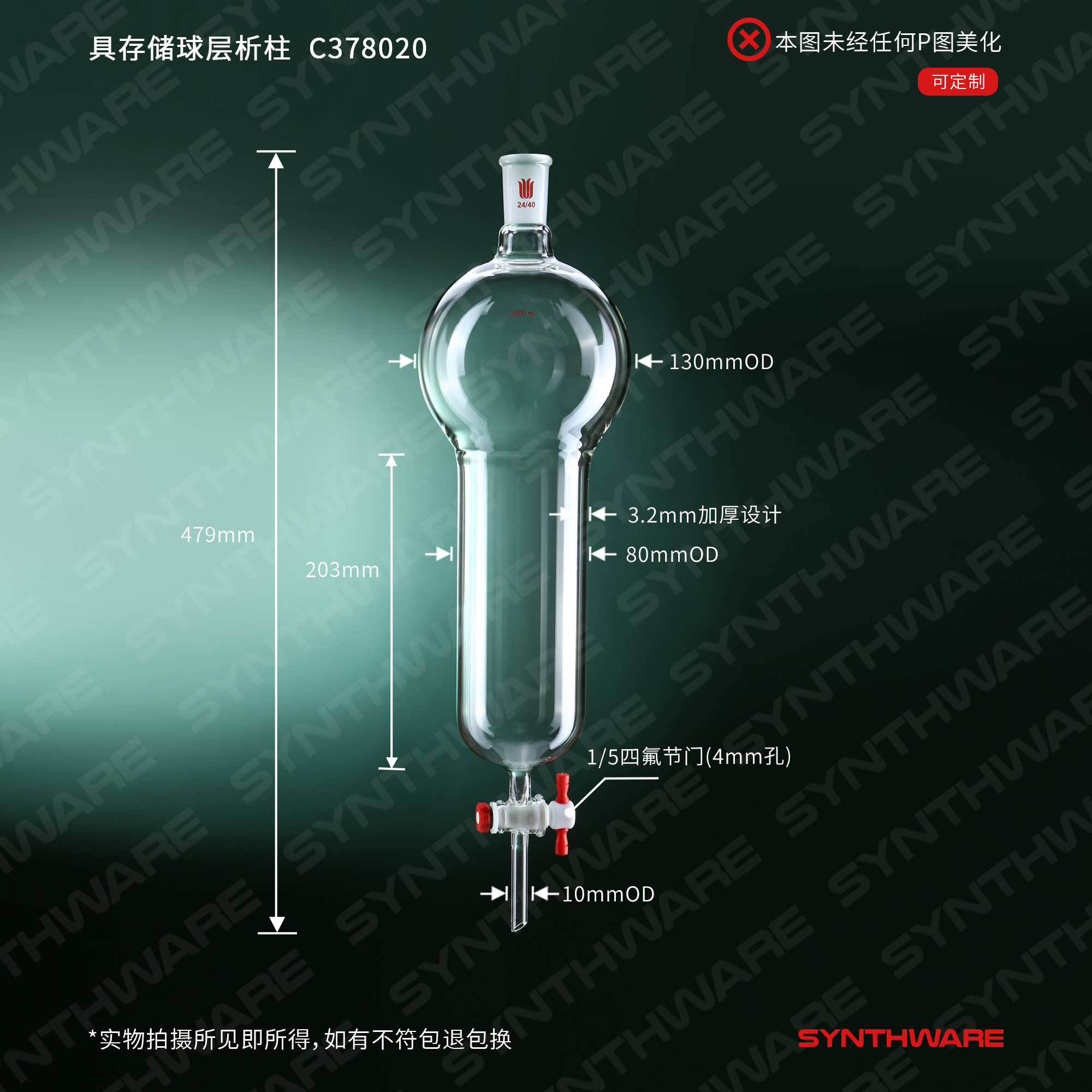 层析类 > 具存储球层析柱 > 具存储球闪式-无砂板层析柱 > SYNTHWARE > 具存储球层析柱,24/40,φ80mm,有效长203mm,存储球:1000ml C378020