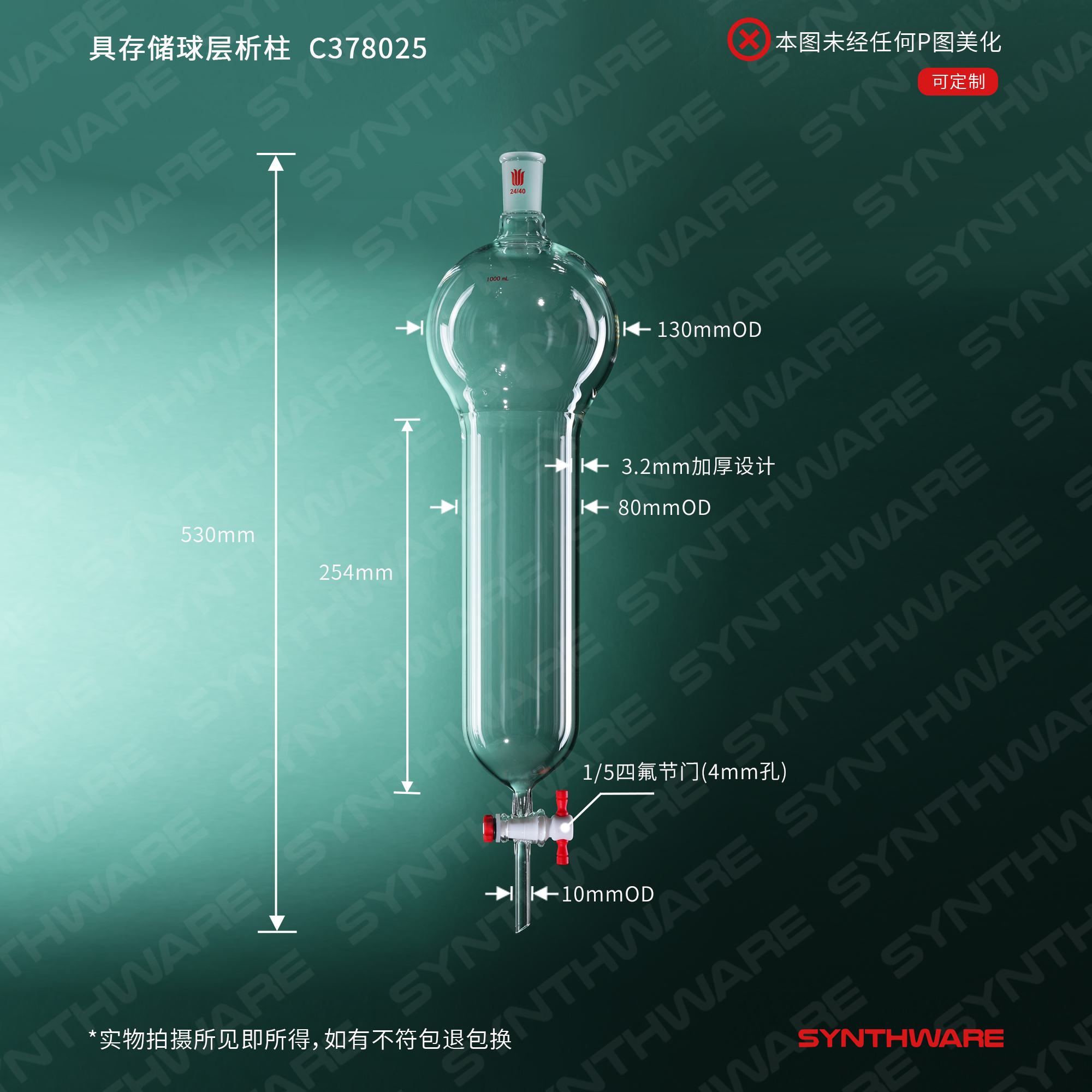 层析类 > 具存储球层析柱 > 具存储球闪式-无砂板层析柱 > SYNTHWARE > 具存储球层析柱,24/40,φ80mm,有效长254mm,存储球:1000ml C378025