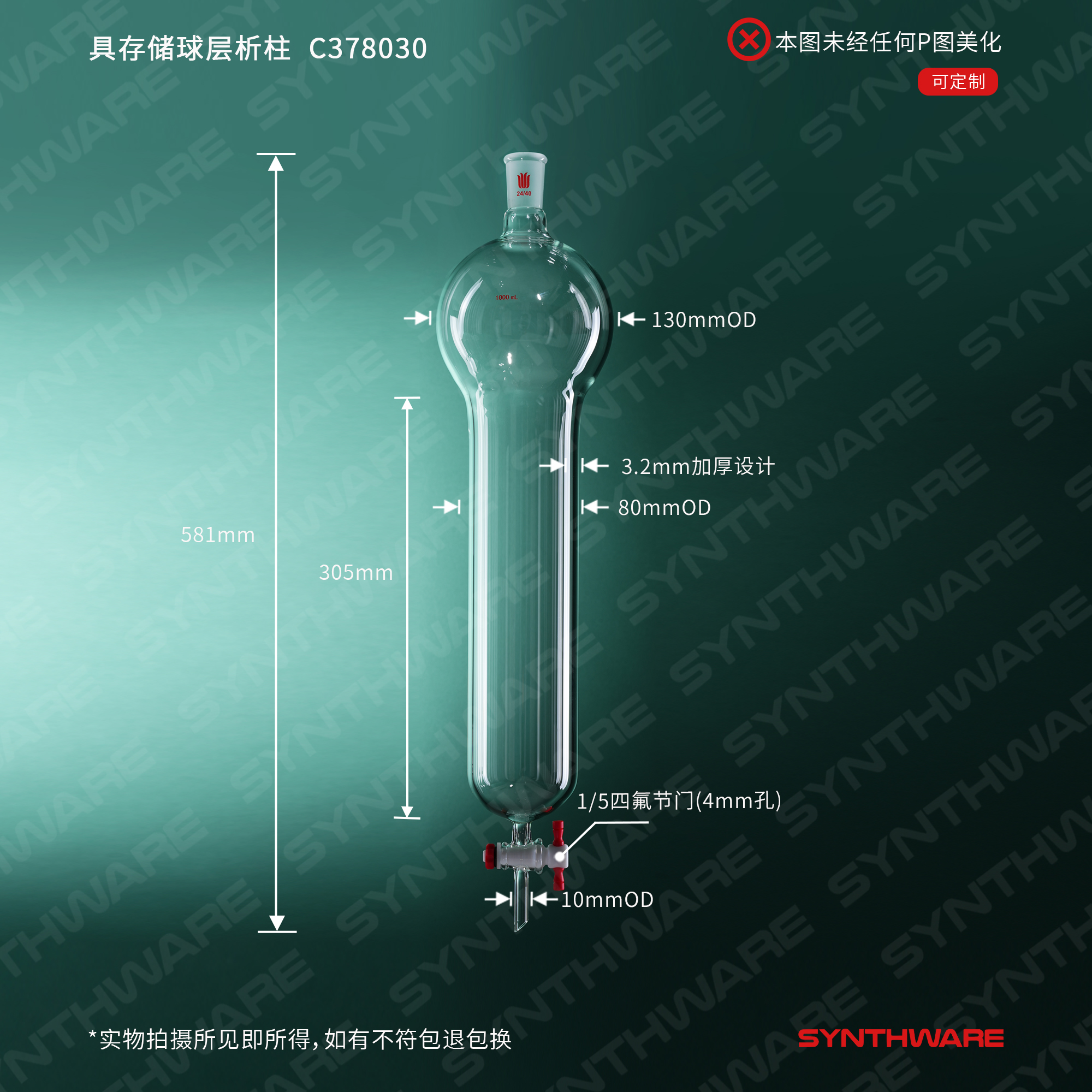 层析类 > 具存储球层析柱 > 具存储球闪式-无砂板层析柱 > SYNTHWARE > 具存储球层析柱,24/40,φ80mm,有效长305mm,存储球:1000ml C378030
