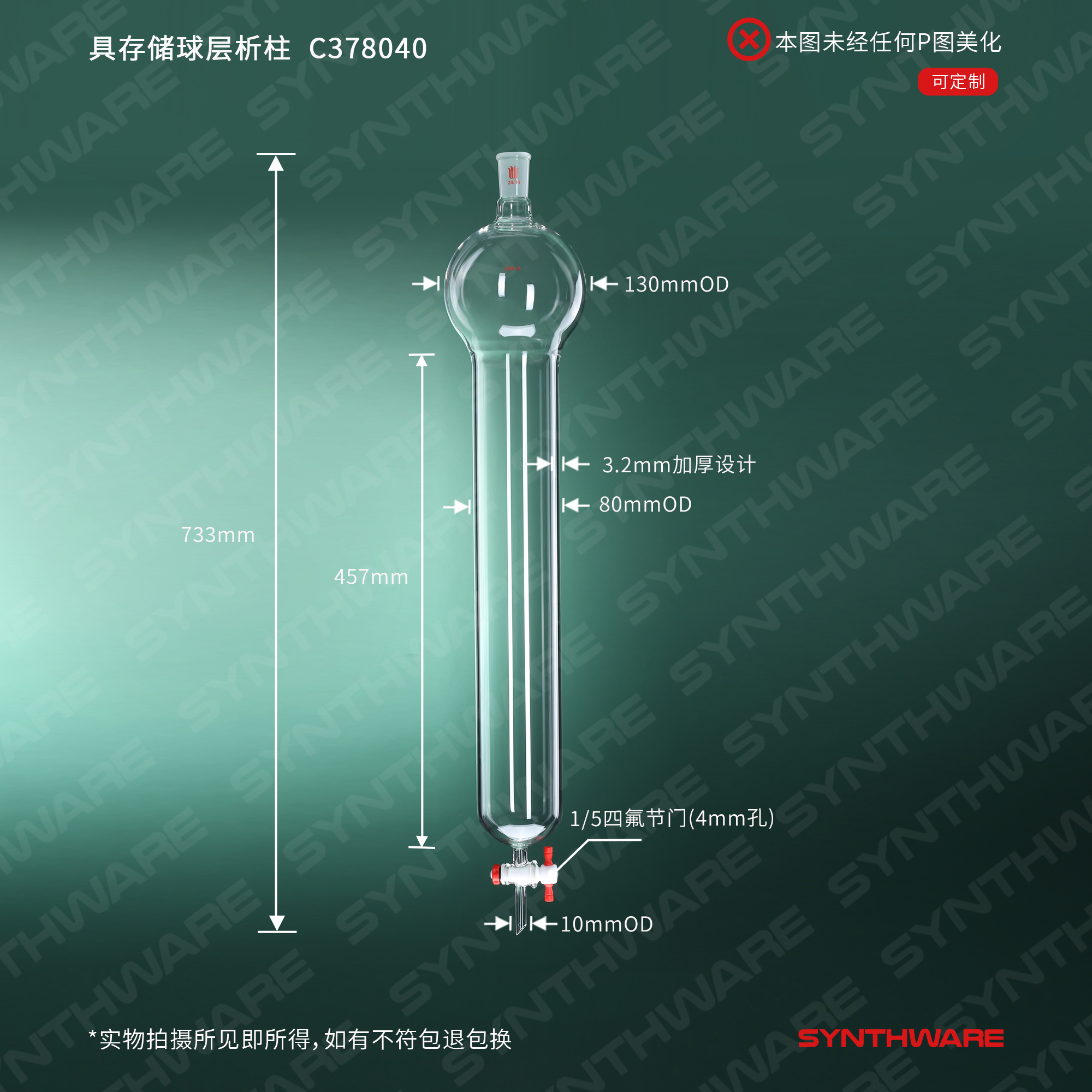 层析类 > 具存储球层析柱 > 具存储球闪式-无砂板层析柱 > SYNTHWARE > 具存储球层析柱,24/40,φ80mm,有效长457mm,存储球:1000ml C378040