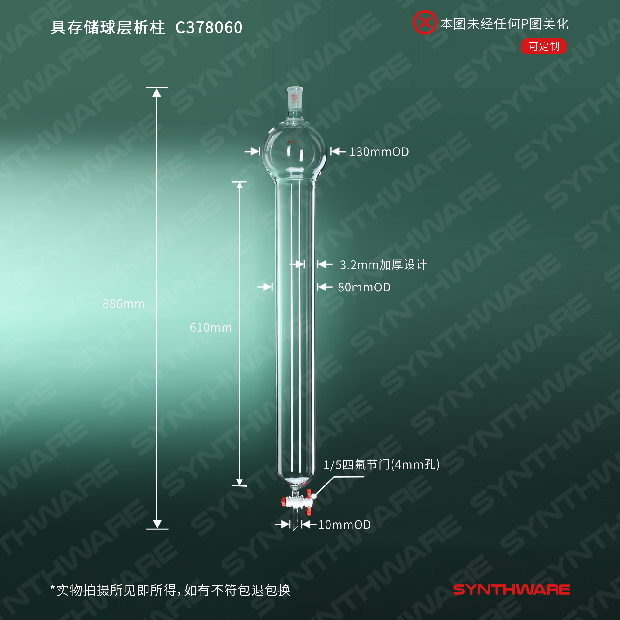 层析类 > 具存储球层析柱 > 具存储球闪式-无砂板层析柱 > SYNTHWARE > 具存储球层析柱,24/40,φ80mm,有效长610mm,存储球:1000ml C378060
