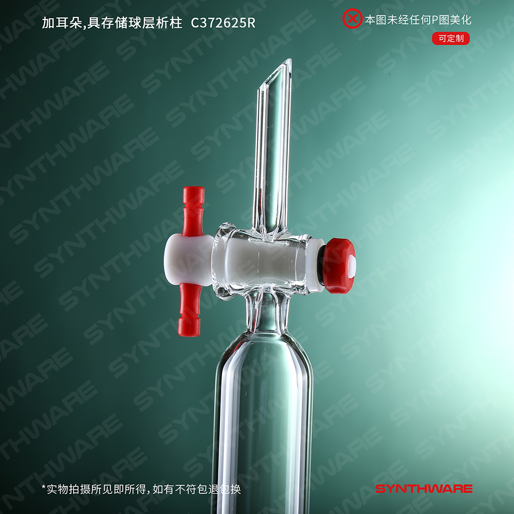层析类 > 具存储球层析柱 > 带挂钩-具存储球闪式-无砂芯层析柱 > SYNTHWARE > 加耳朵,具存储球层析柱,24/40,φ26mm,有效长254mm,存储球:250ml C372625R
