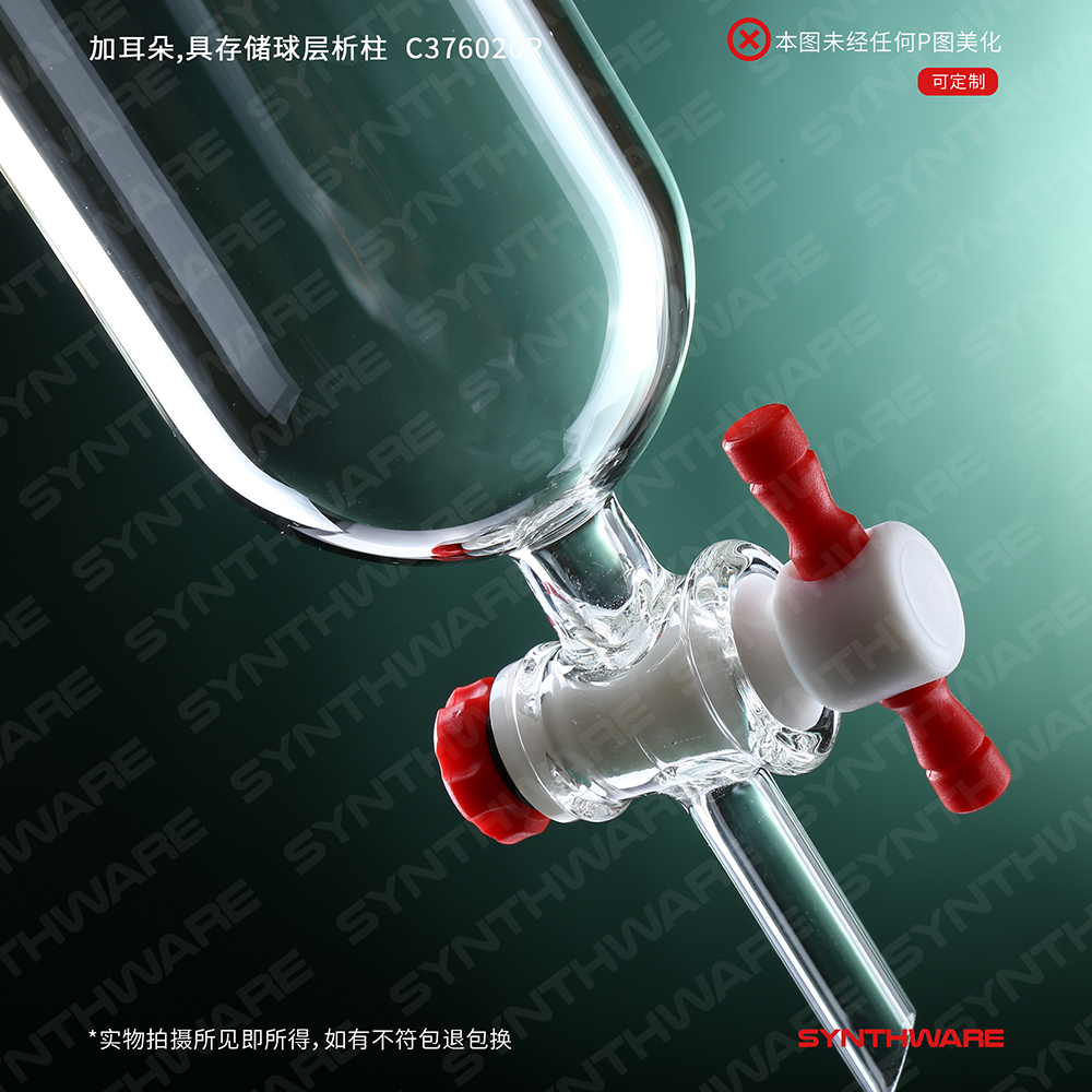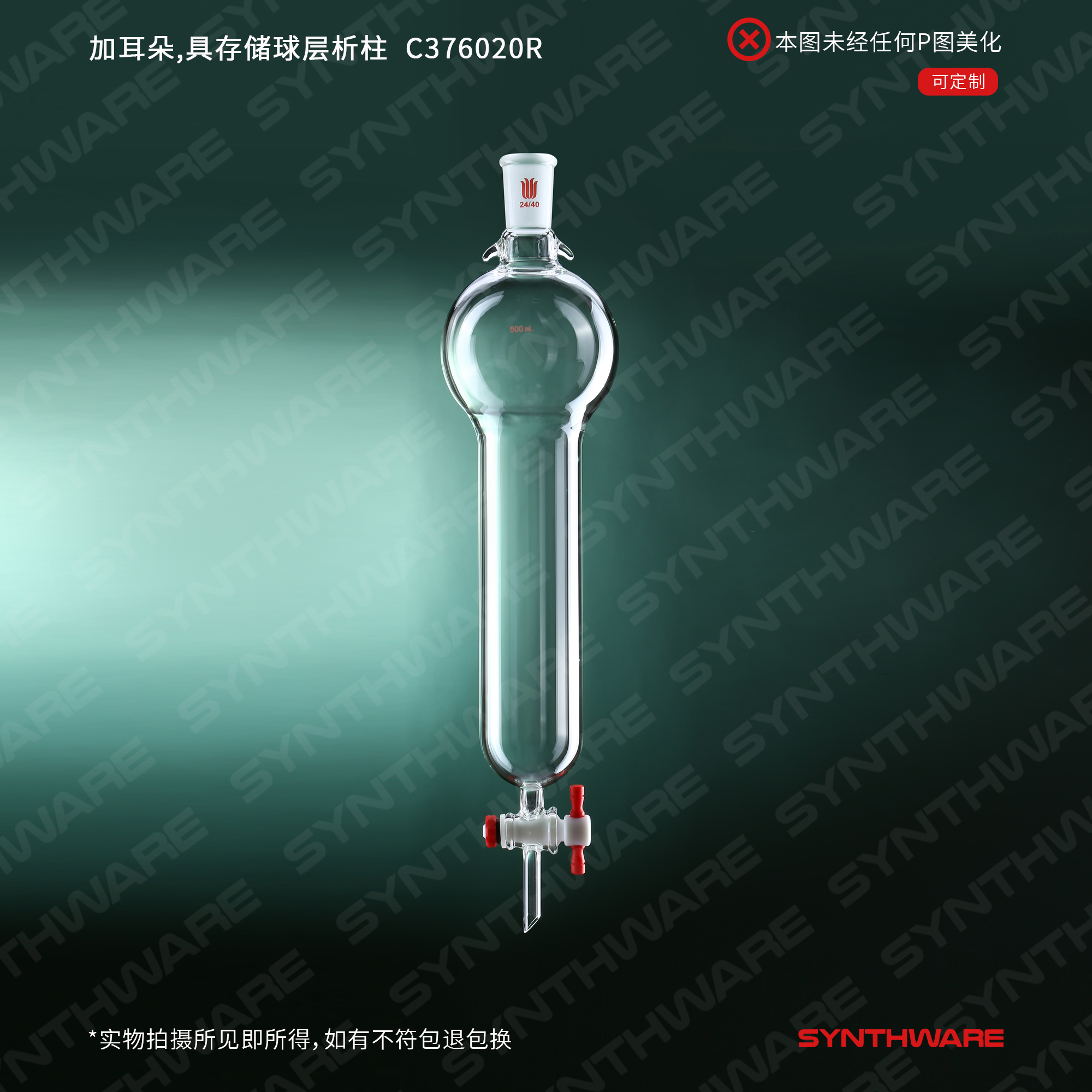 层析类 > 具存储球层析柱 > 带挂钩-具存储球闪式-无砂芯层析柱 > SYNTHWARE > 加耳朵,具存储球层析柱,24/40,φ60mm,有效长203mm,存储球:500ml C376020R