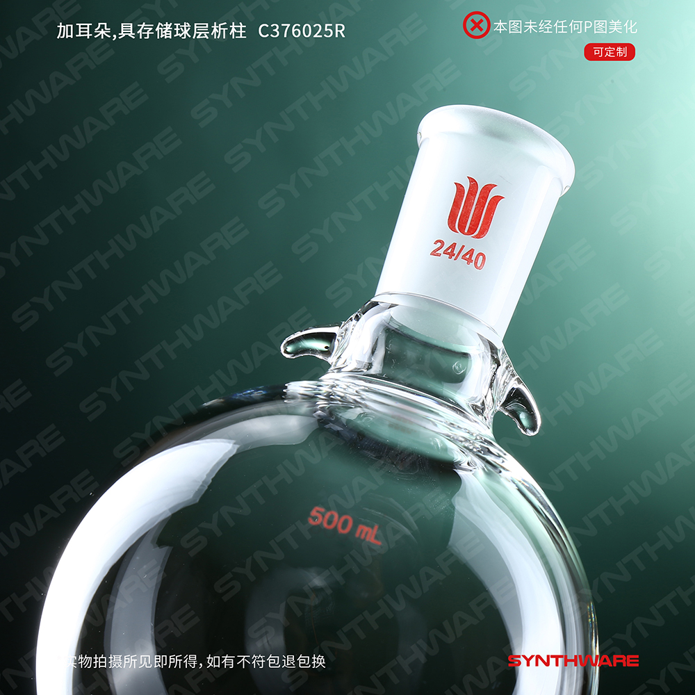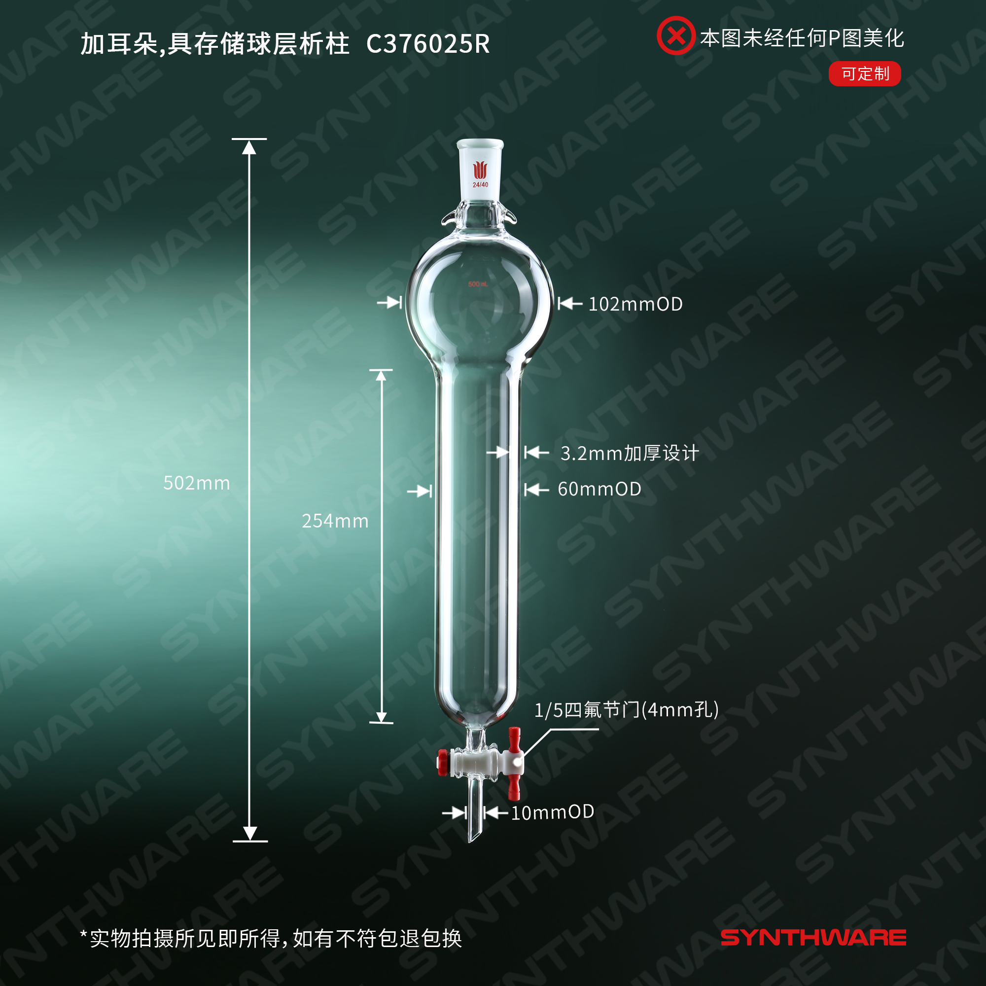 层析类 > 具存储球层析柱 > 带挂钩-具存储球闪式-无砂芯层析柱 > SYNTHWARE > 加耳朵,具存储球层析柱,24/40,φ60mm,有效长254mm,存储球:500ml C376025R