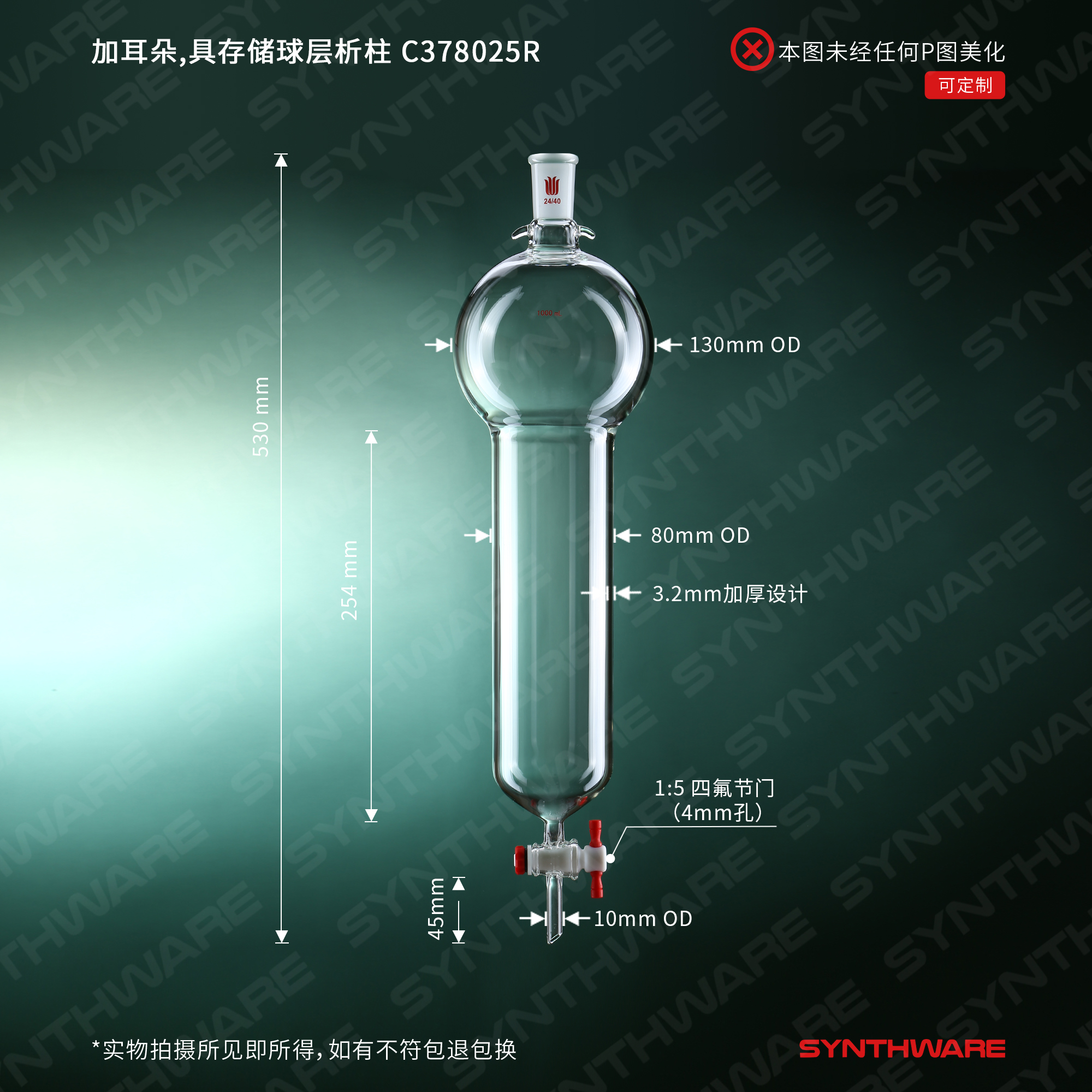 > 加耳朵,具存储球层析柱,24/40,φ80mm,有效长254mm,存储球:1000ml C378025R