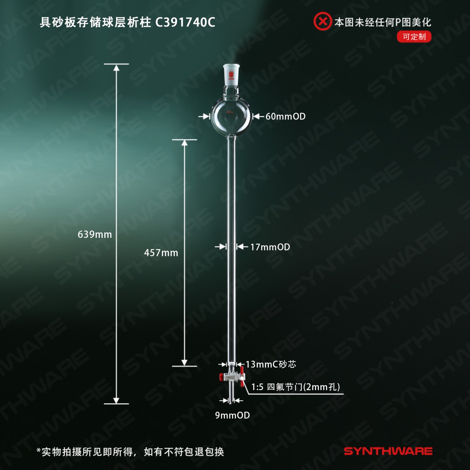 具砂板存储球层析柱,24/40,φ17mm,有效长457mm,存储球容量250ml C391740C