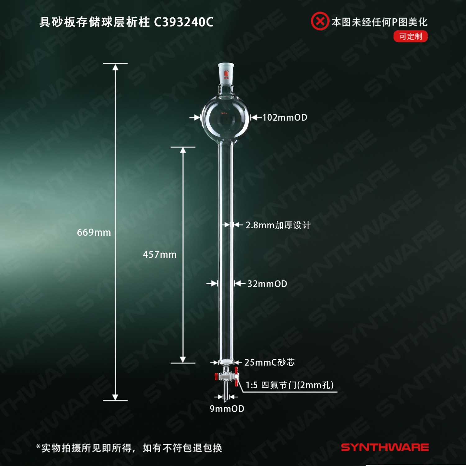 层析类 > 具存储球层析柱 > 具砂板存储球闪式层析柱 > SYNTHWARE > 具砂板存储球层析柱,24/40,φ32mm,有效长457mm,存储球容量500ml C393240C