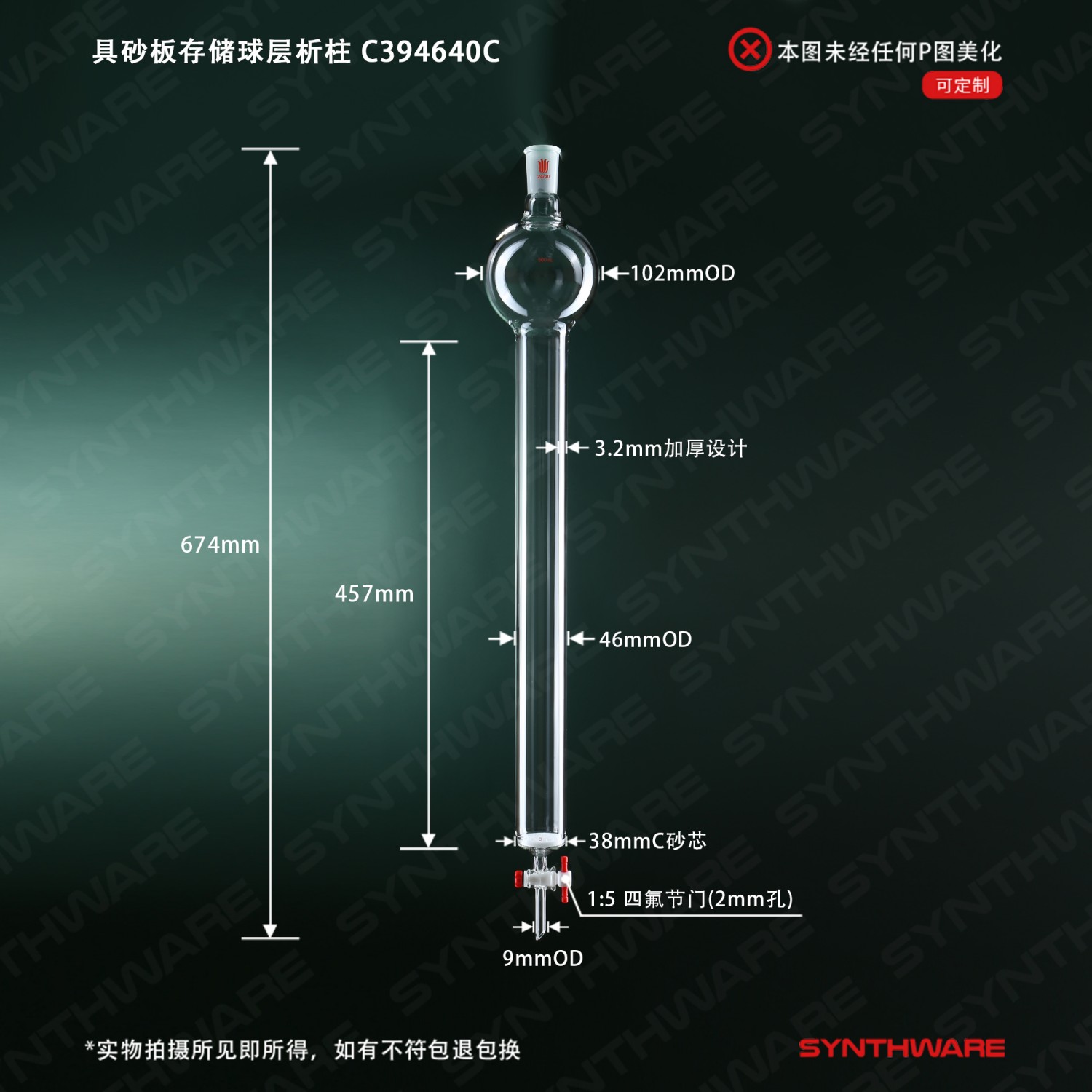 层析类 > 具存储球层析柱 > 具砂板存储球闪式层析柱 > SYNTHWARE > 具砂板存储球层析柱,24/40,φ46mm,有效长457mm,存储球容量500ml C394640C