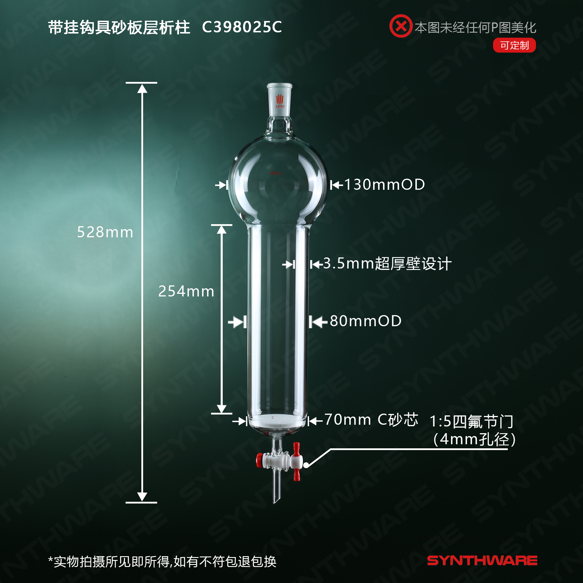 层析类 > 具存储球层析柱 > 具砂板存储球闪式层析柱 > SYNTHWARE > 具砂板存储球层析柱,24/40,φ80mm,有效长254mm,存储球容量1000ml C398025C