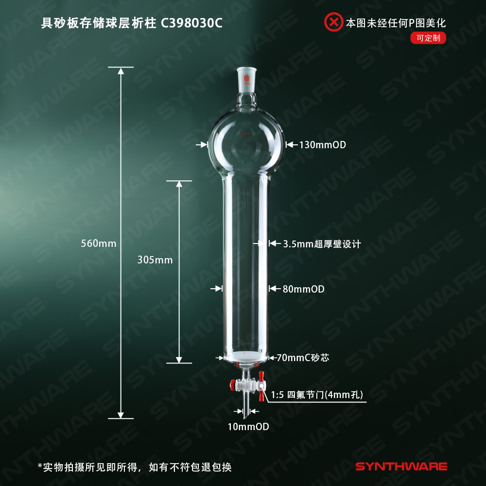 层析类 > 具存储球层析柱 > 具砂板存储球闪式层析柱 > SYNTHWARE > 具砂板存储球层析柱,24/40,φ80mm,有效长305mm,存储球容量1000ml C398030C