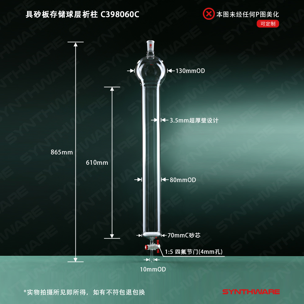 层析类 > 具存储球层析柱 > 具砂板存储球闪式层析柱 > SYNTHWARE > 具砂板存储球层析柱,24/40,φ80mm,有效长610mm,存储球容量1000ml C398060C