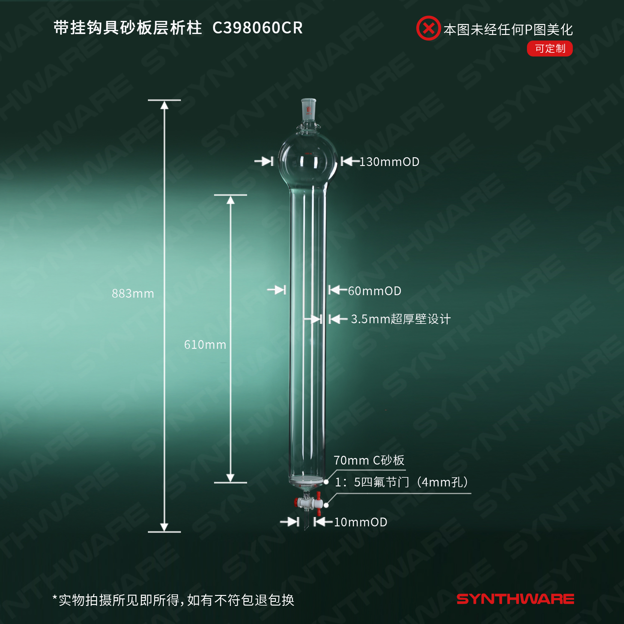 层析类 > 具存储球层析柱 > 带挂钩-具砂板存储球闪式层析柱 > SYNTHWARE > 带挂钩具砂板层析柱,24/40,φ80mm,有效长610mm,存储球容量1000ml C398060CR