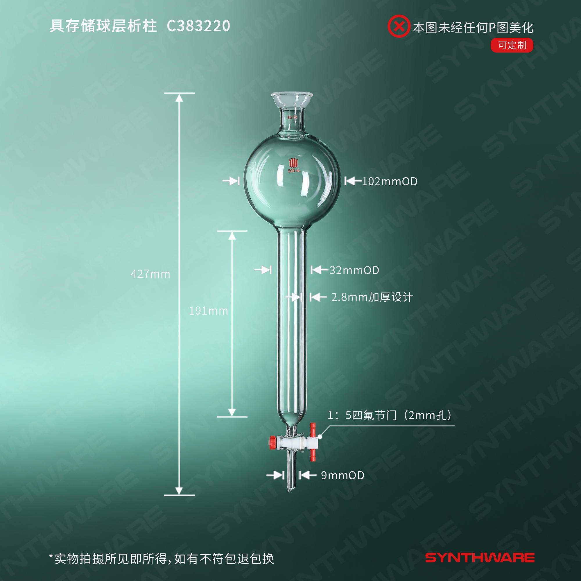 层析类 > 具存储球层析柱 > 球碗口闪式-无砂板层析柱 > SYNTHWARE > 具存储球层析柱,35/20,φ32mm,有效长:203mm,存储球:500ml C383220