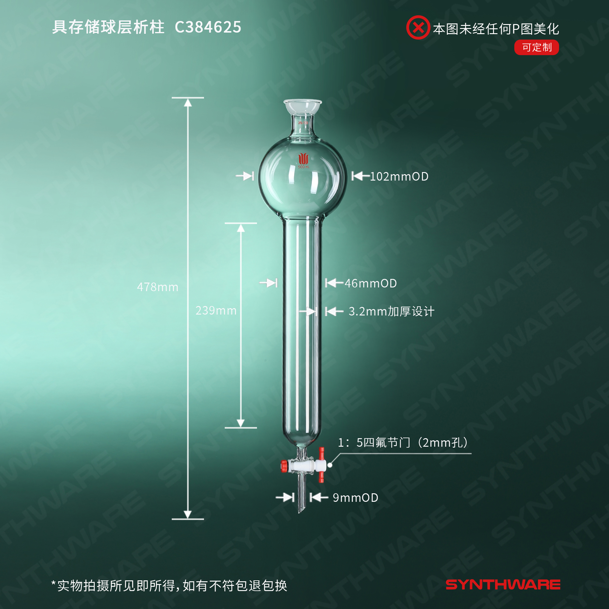 层析类 > 具存储球层析柱 > 球碗口闪式-无砂板层析柱 > SYNTHWARE > 具存储球层析柱,35/20,φ46mm,有效长:254mm,存储球:500ml C384625