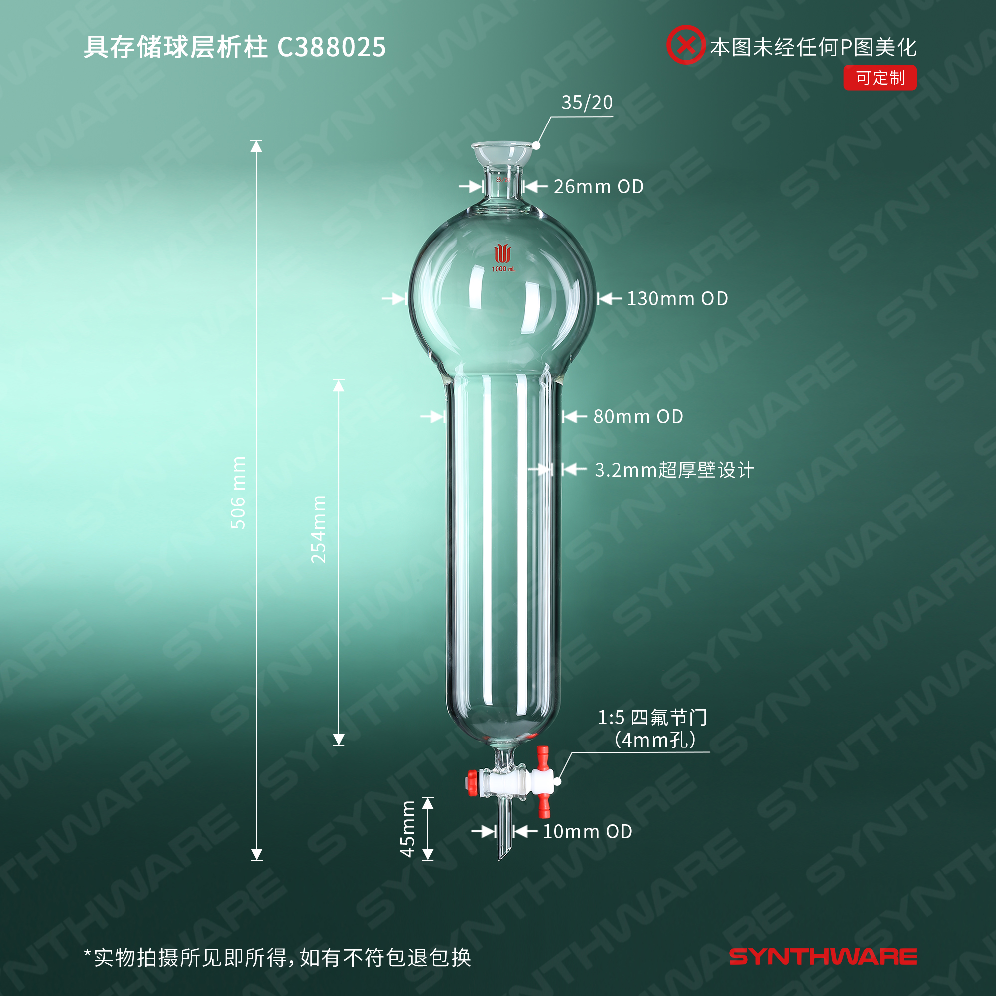 层析类 > 具存储球层析柱 > 球碗口闪式-无砂板层析柱 > SYNTHWARE > 具存储球层析柱,35/20,φ80mm,有效长:254mm,存储球:1000ml C388025
