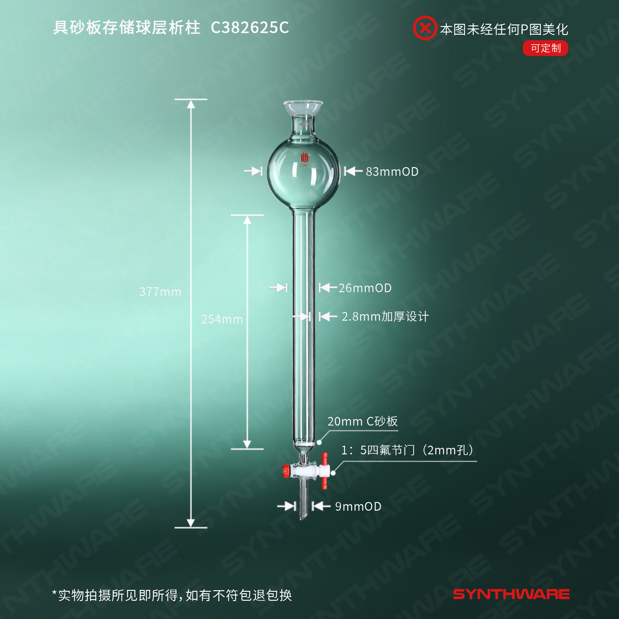层析类 > 具存储球层析柱 > 球碗口闪式-具砂板层析柱 > SYNTHWARE > 具砂板存储球层析柱,35/20,φ26mm,有效长:254mm,250ml,C C382625C