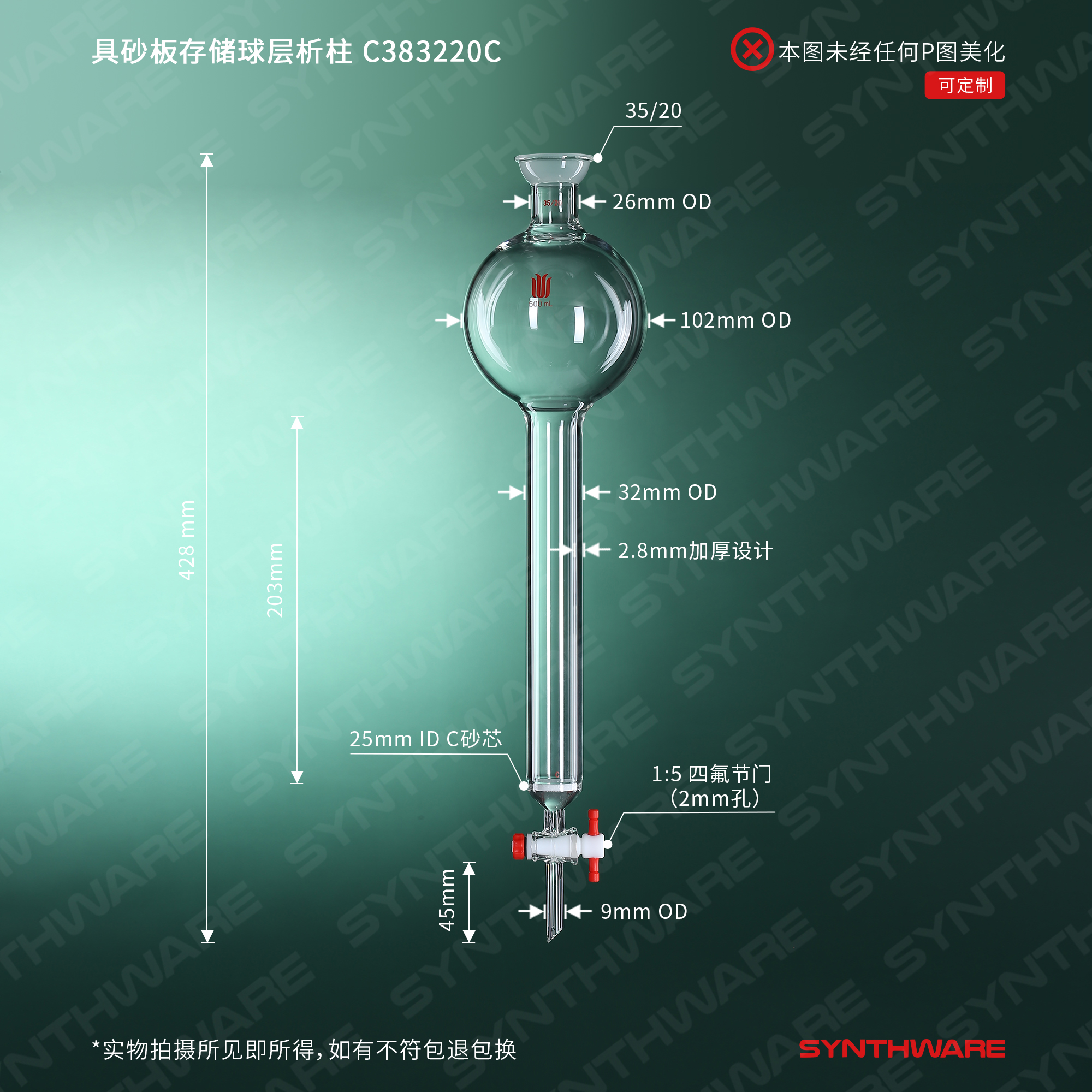 层析类 > 具存储球层析柱 > 球碗口闪式-具砂板层析柱 > SYNTHWARE > 具砂板存储球层析柱,35/20,φ32mm,有效长:203mm,500ml,C C383220C