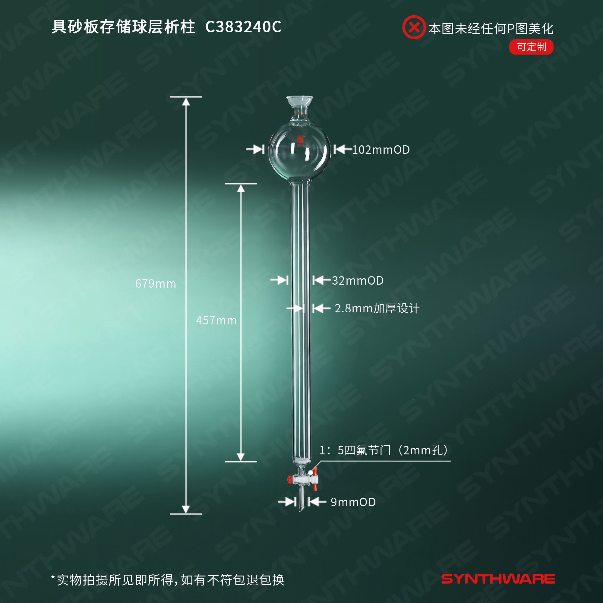 层析类 > 具存储球层析柱 > 球碗口闪式-具砂板层析柱 > SYNTHWARE > 具砂板存储球层析柱,35/20,φ32mm,有效长:457mm,500ml,C C383240C