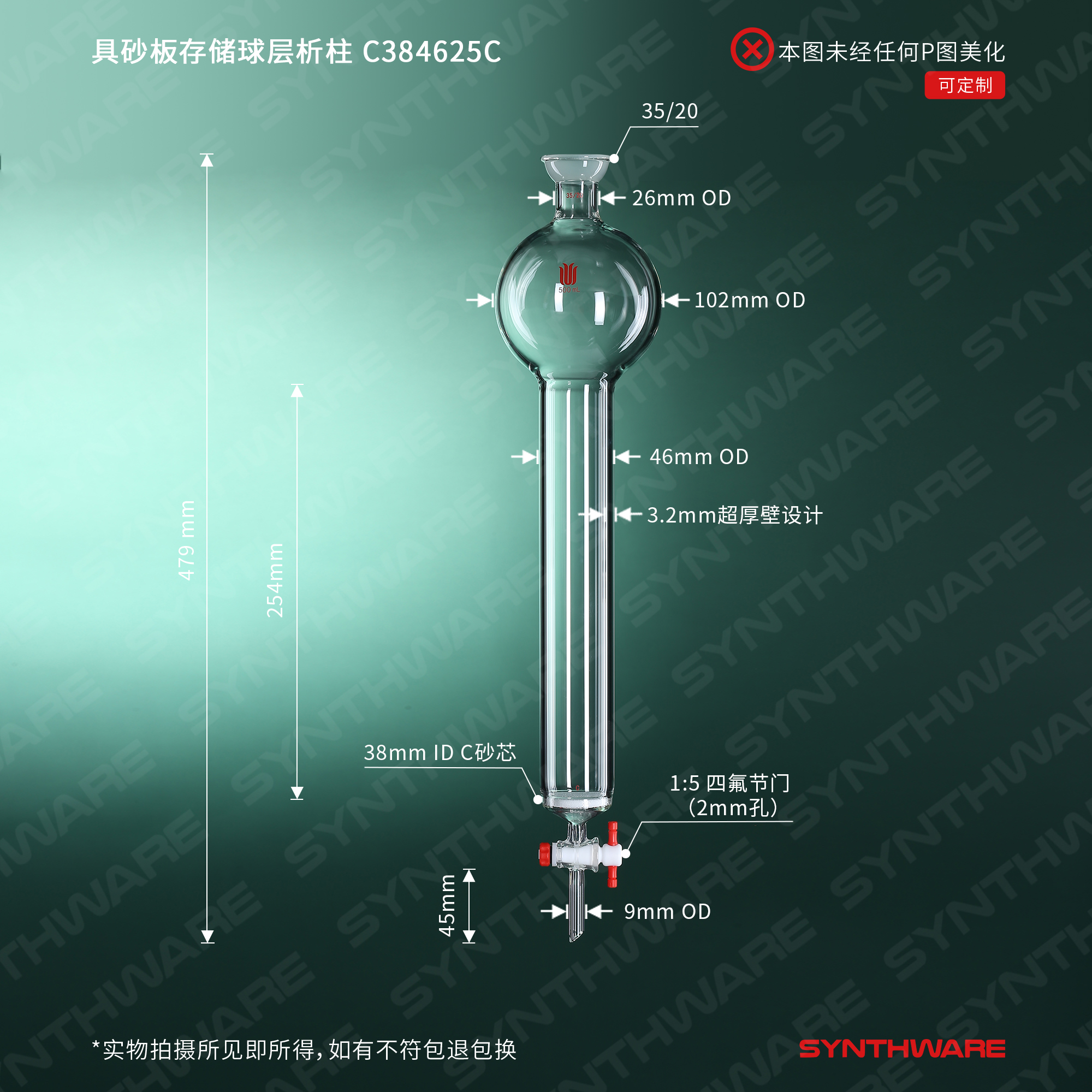 层析类 > 具存储球层析柱 > 球碗口闪式-具砂板层析柱 > SYNTHWARE > 具砂板存储球层析柱,35/20,φ46mm,有效长:254mm,500ml,C C384625C