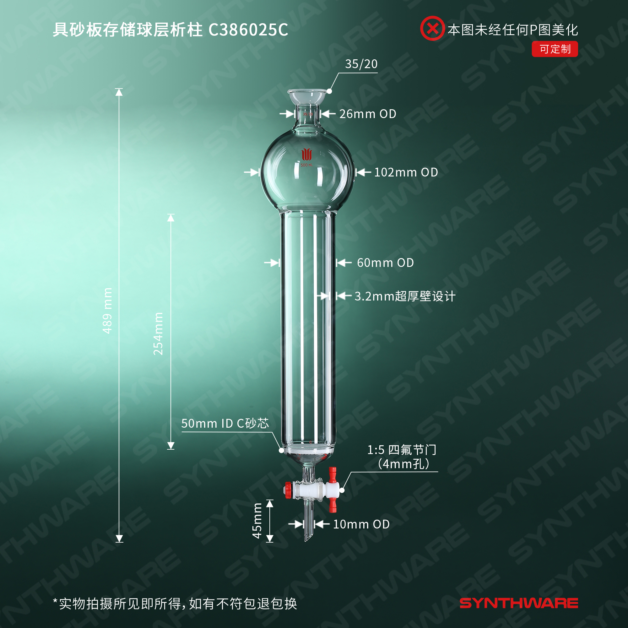 层析类 > 具存储球层析柱 > 球碗口闪式-具砂板层析柱 > SYNTHWARE > 具砂板存储球层析柱,35/20,φ60mm,有效长:254mm,500ml,C C386025C