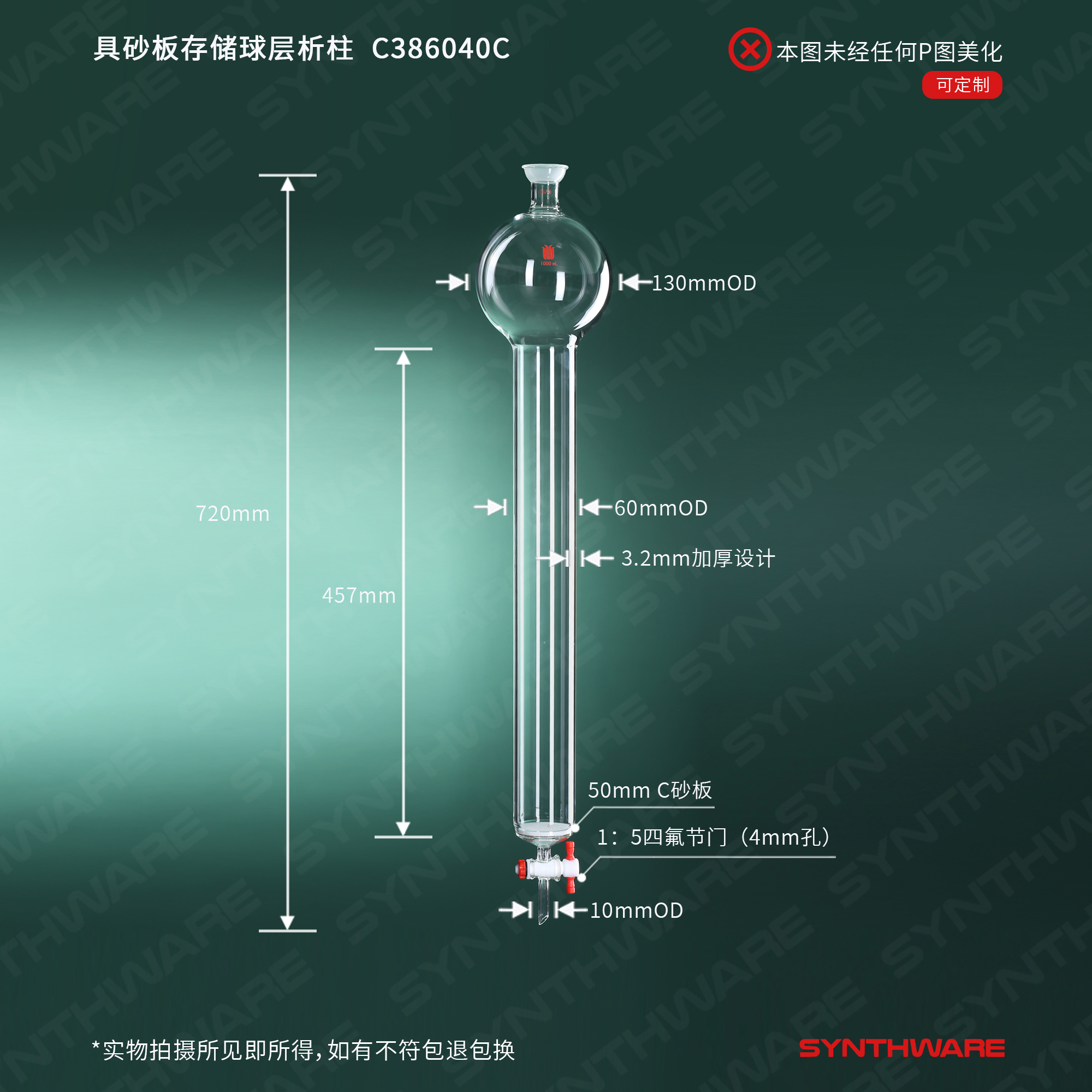 层析类 > 具存储球层析柱 > 球碗口闪式-具砂板层析柱 > SYNTHWARE > 具砂板存储球层析柱,35/20,φ60mm,有效长:457mm,1000ml,C C386040C