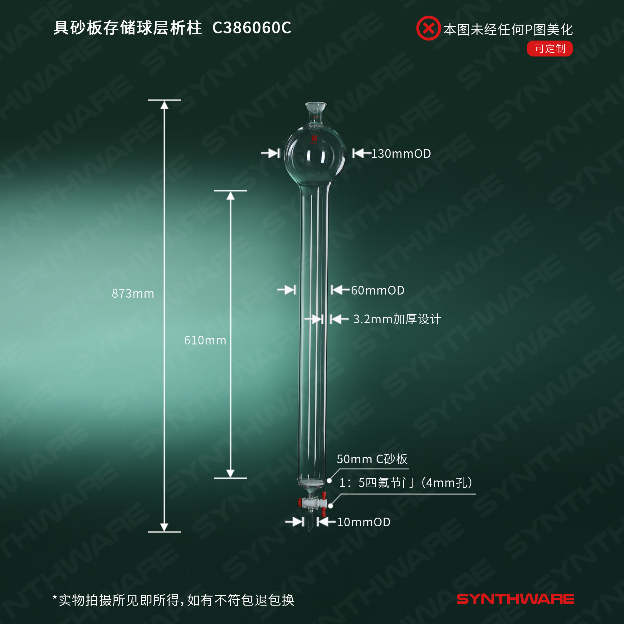 层析类 > 具存储球层析柱 > 球碗口闪式-具砂板层析柱 > SYNTHWARE > 具砂板存储球层析柱,35/20,φ60mm,有效长:610mm,1000ml,C C386060C