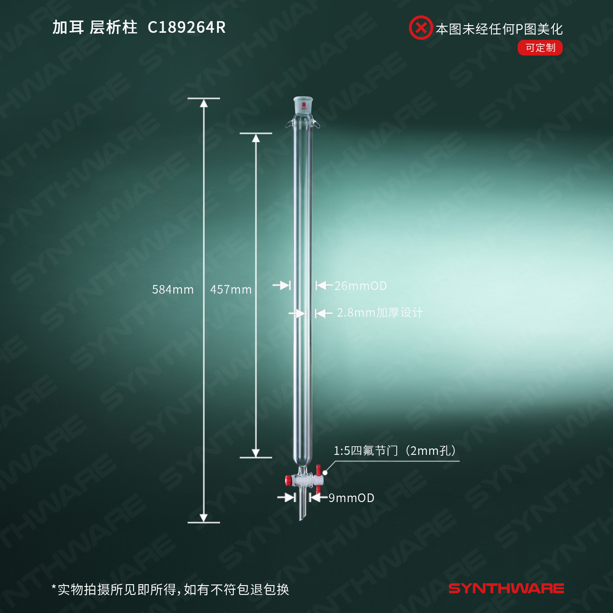层析类 > 层析柱 > 带挂钩-闪式-无砂板层析柱 > SYNTHWARE > 加耳 层析柱,φ26mm,有效长457mm,节门孔径:2mm,19/22 C189264R