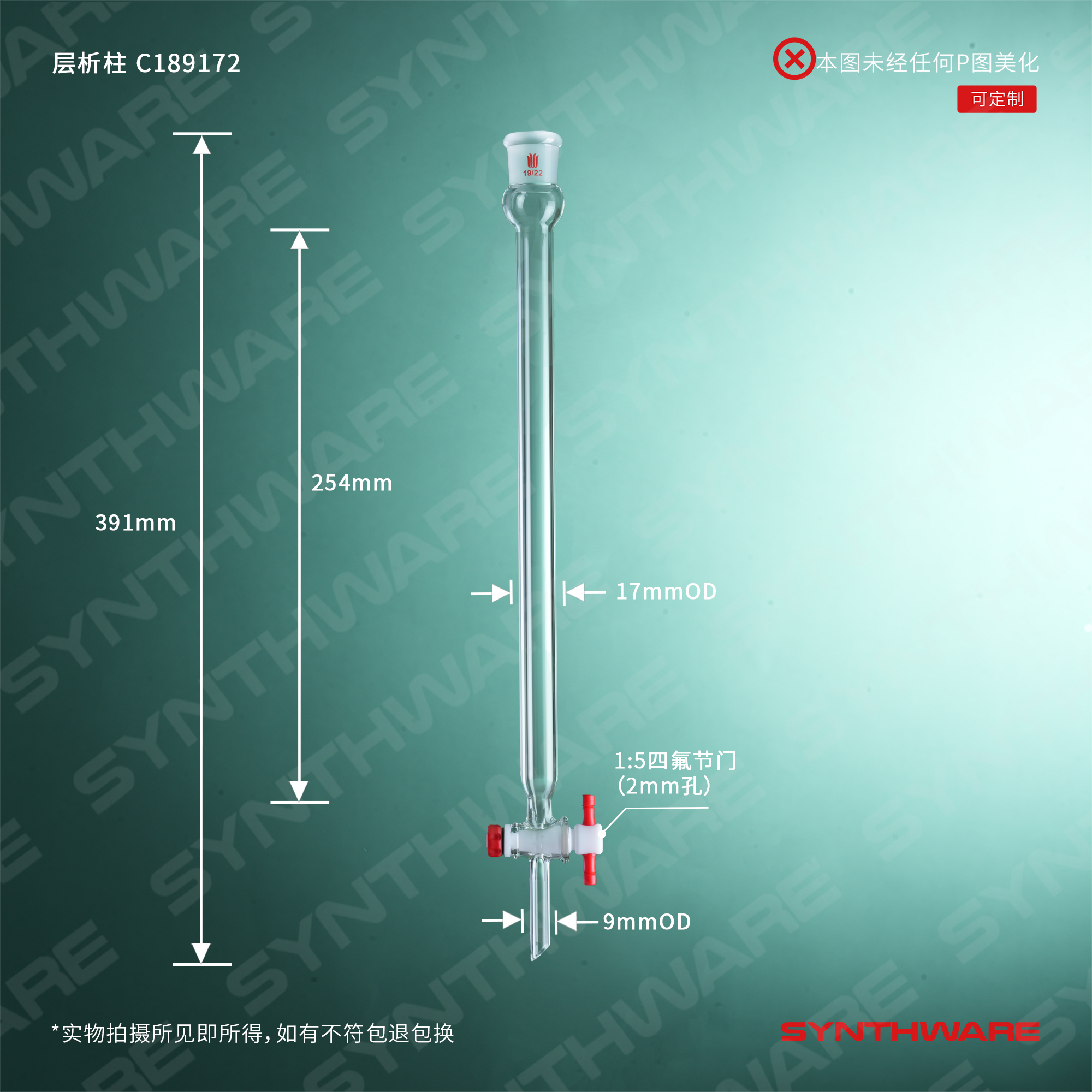 层析类 > 层析柱 > 无砂板闪式层析柱 > SYNTHWARE > 层析柱,φ17mm,有效长254mm,节门孔径:2mm,19/22 C189172