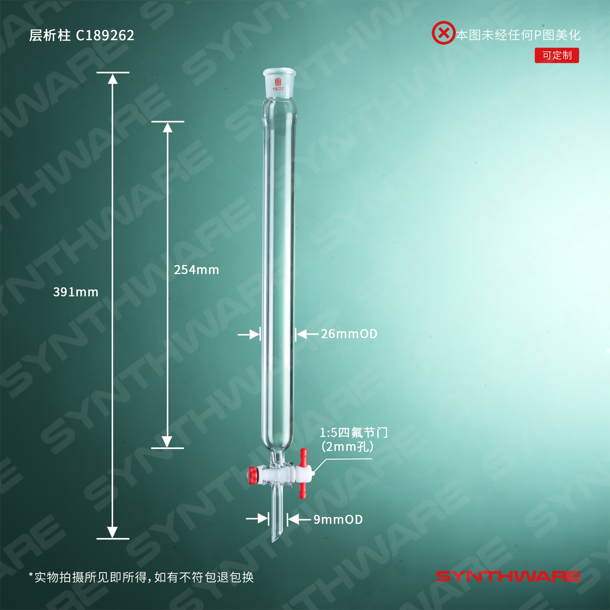 层析类 > 层析柱 > 无砂板闪式层析柱 > SYNTHWARE > 层析柱,φ26mm,有效长254mm,节门孔径:2mm,19/22 C189262