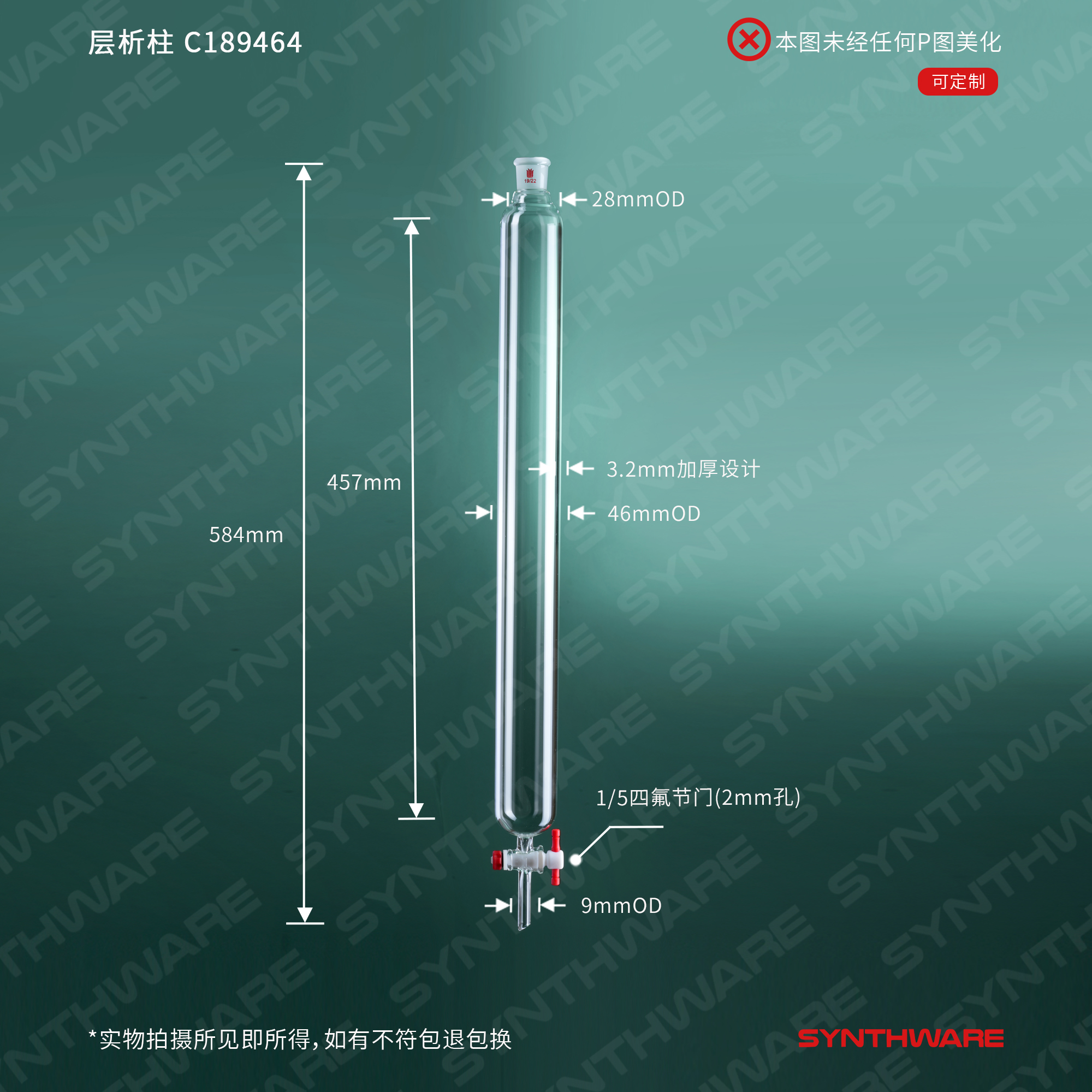 层析类 > 层析柱 > 无砂板闪式层析柱 > SYNTHWARE > 层析柱,φ46mm,有效长457mm,节门孔径:2mm,19/22 C189464